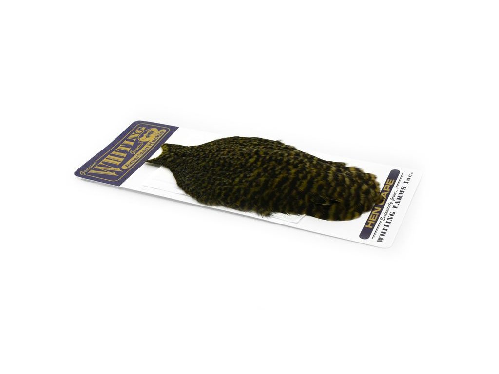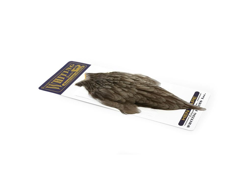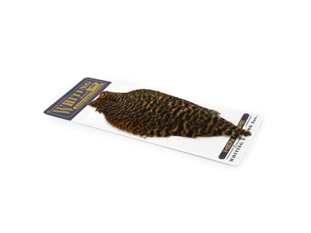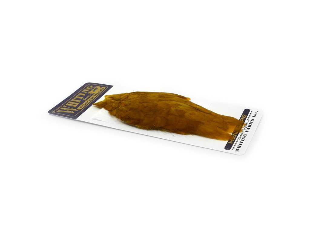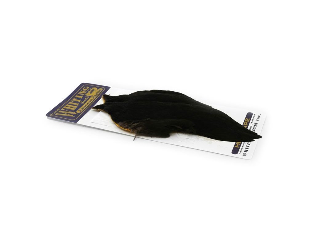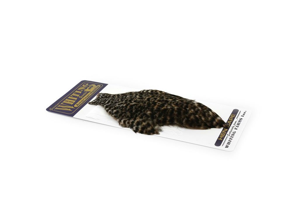 These Whiting Farms American hen Capes are extremely versatile feathers. They have a greater density of web than other hen hackle, and the roundest feather ends.