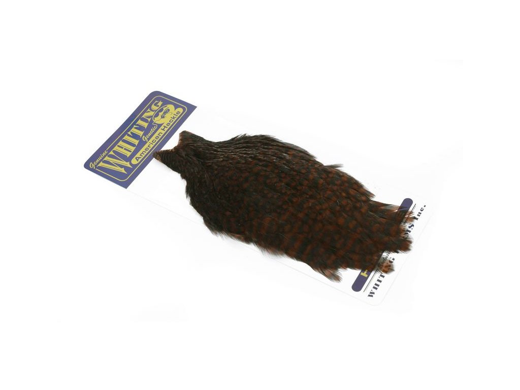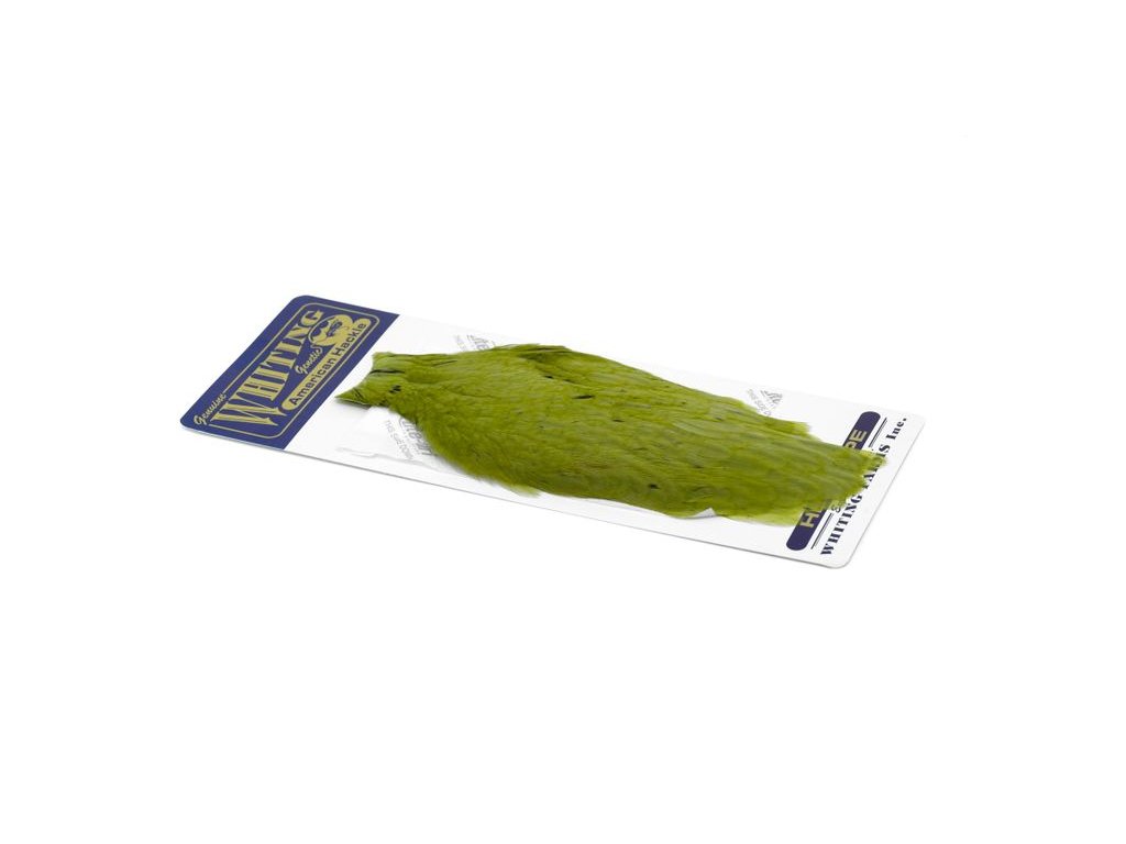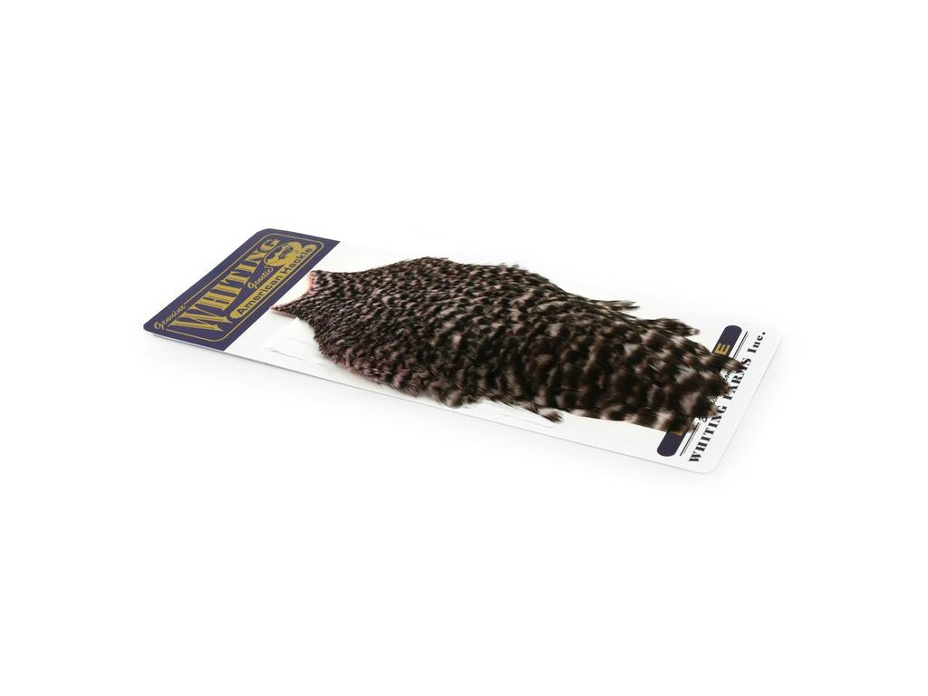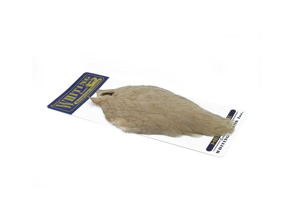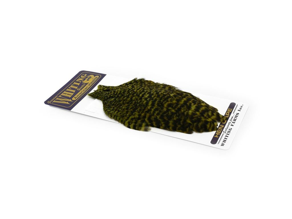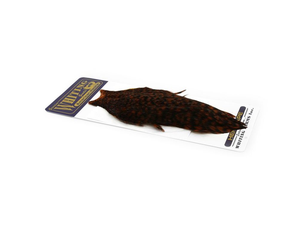 These Whiting Farms American hen Capes are extremely versatile feathers. They have a greater density of web than other hen hackle, and the roundest feather ends.