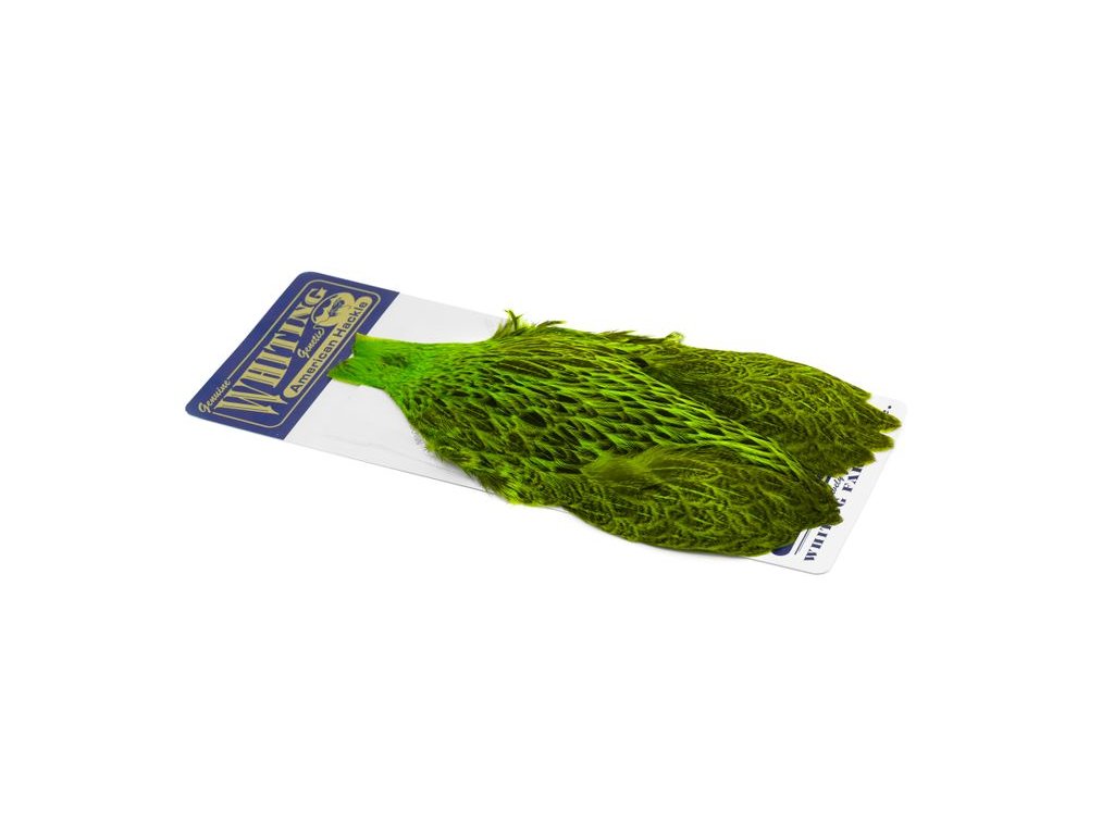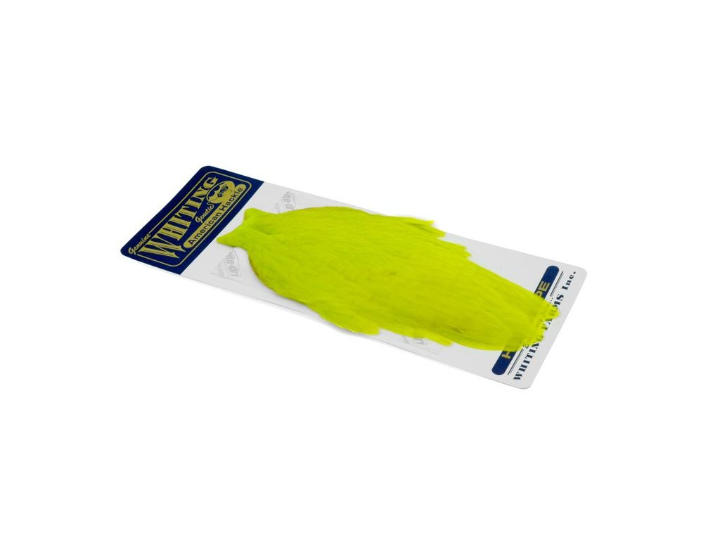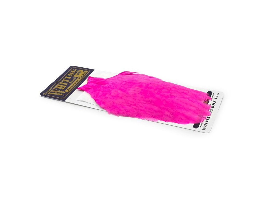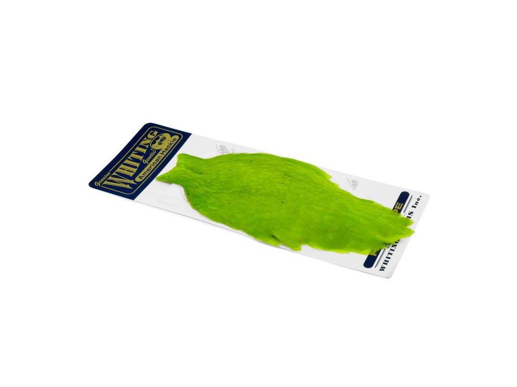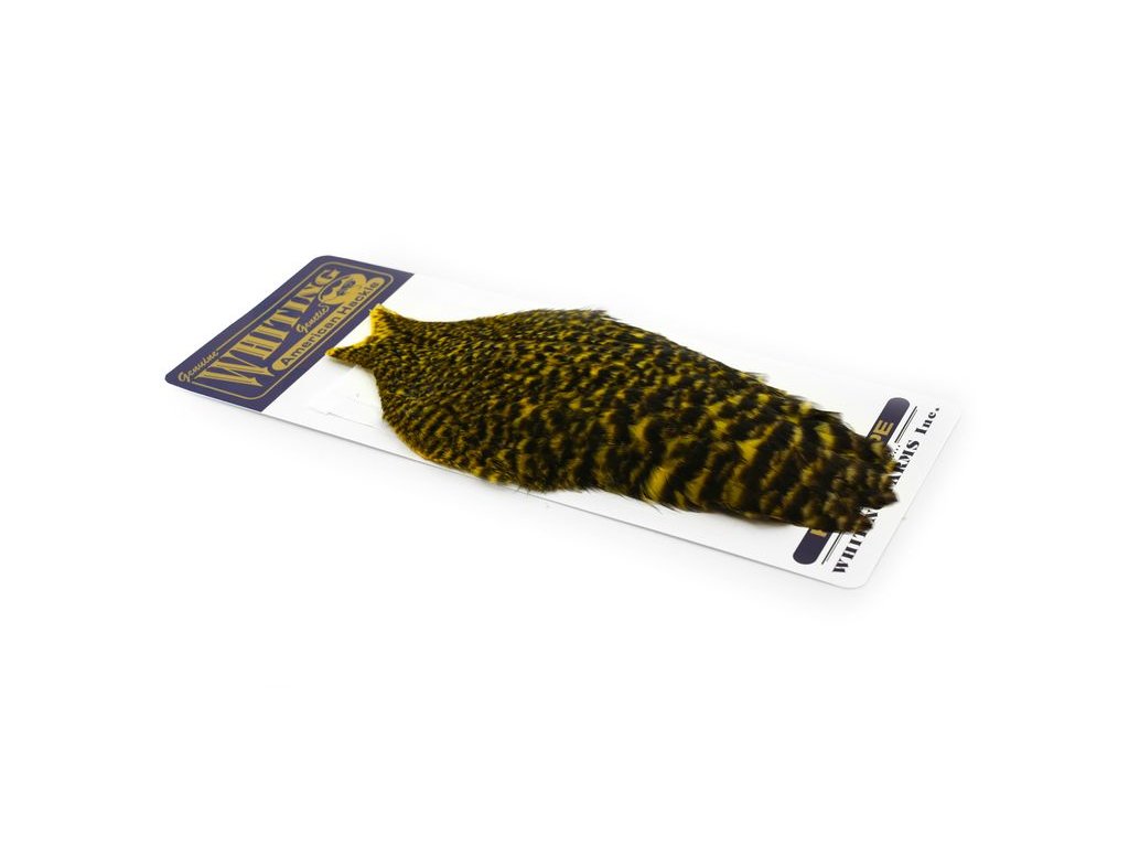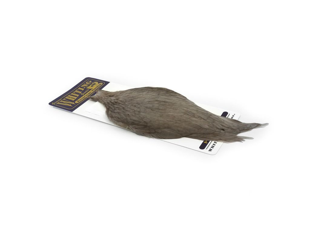 These Whiting Farms American hen Capes are extremely versatile feathers. They have a greater density of web than other hen hackle, and the roundest feather ends.