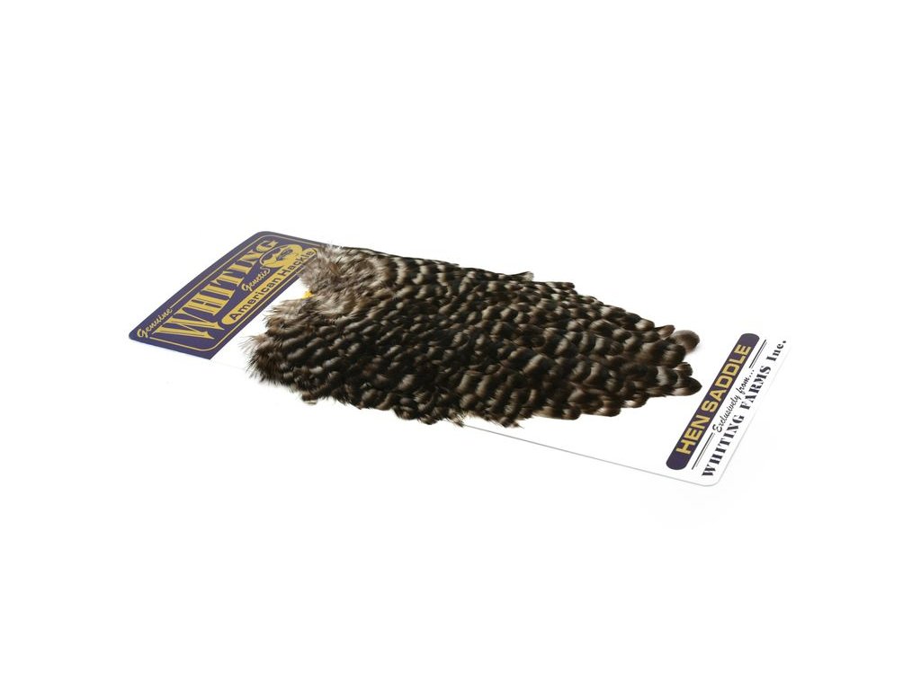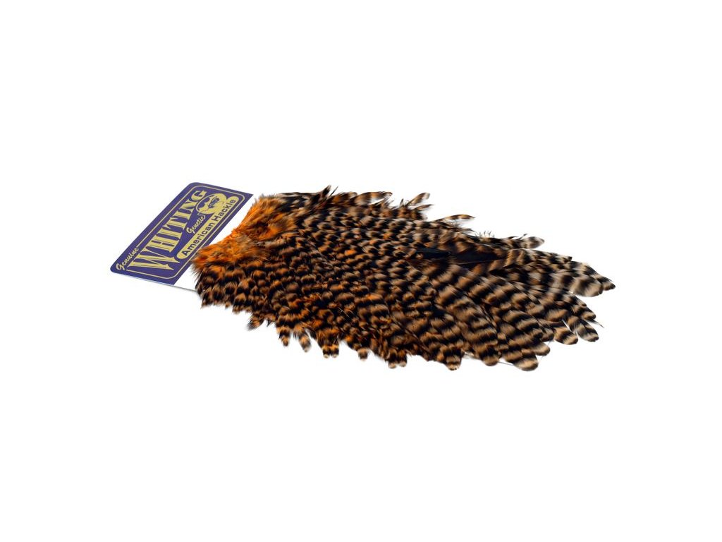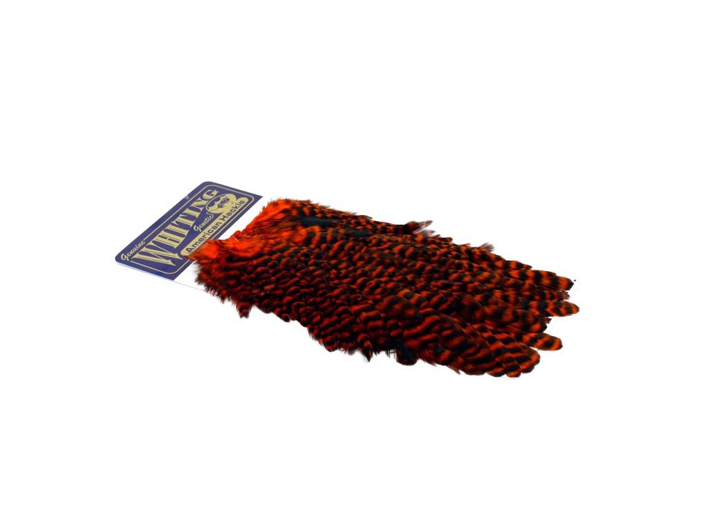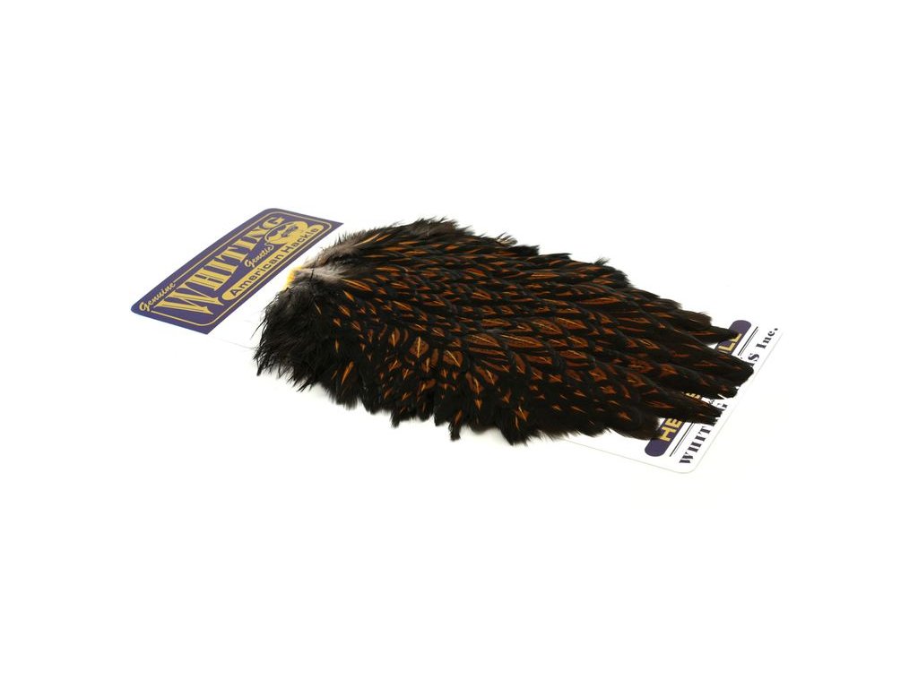 These Whiting Farms Hen Saddles make fantastic wet fly feathers. These long narrow feathers are thinner in than the similar American Hen Saddle. They have fine, sturdy quills for less breakage while tying, and the barbs are sturdy enough to stand up in fast water. A great feather for tying trout, salmon and steelhead streamers. They may also be burnt to create wings for dry flies.