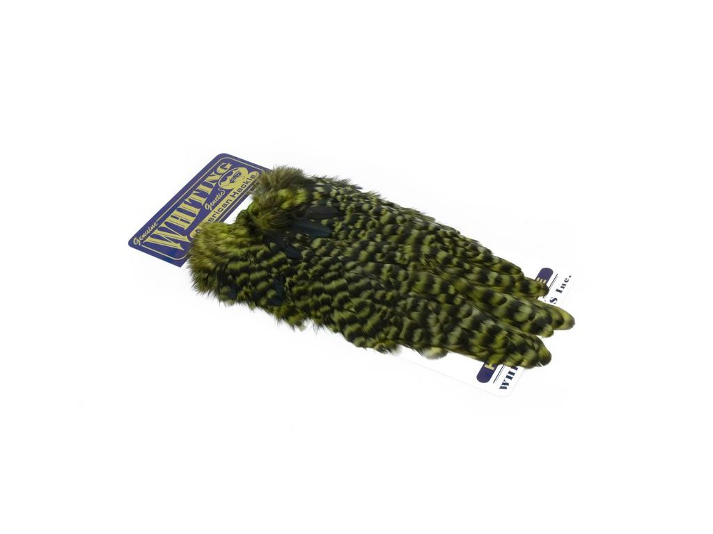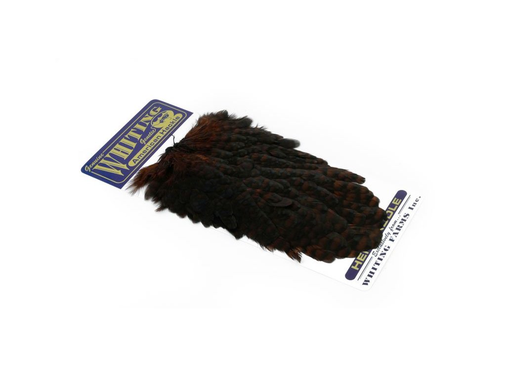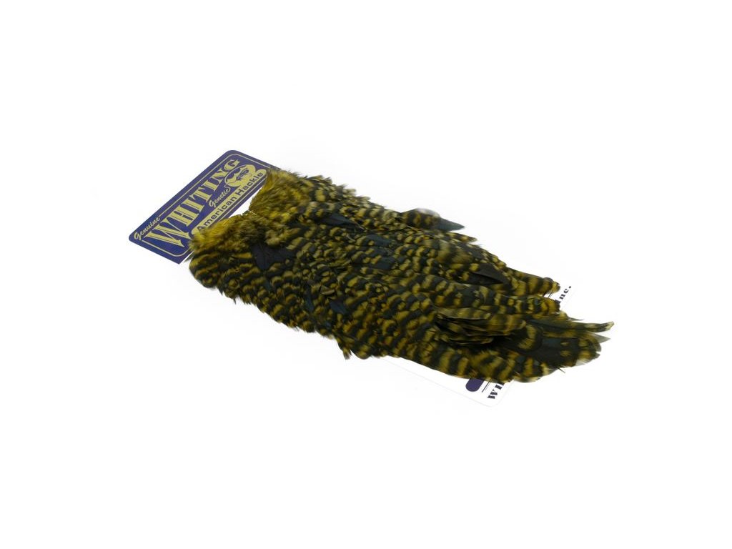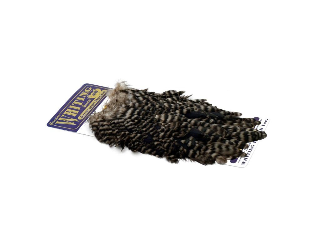 These Whiting Farms Hen Saddles make fantastic wet fly feathers. These long narrow feathers are thinner in than the similar American Hen Saddle. They have fine, sturdy quills for less breakage while tying, and the barbs are sturdy enough to stand up in fast water. A great feather for tying trout, salmon and steelhead streamers. They may also be burnt to create wings for dry flies.