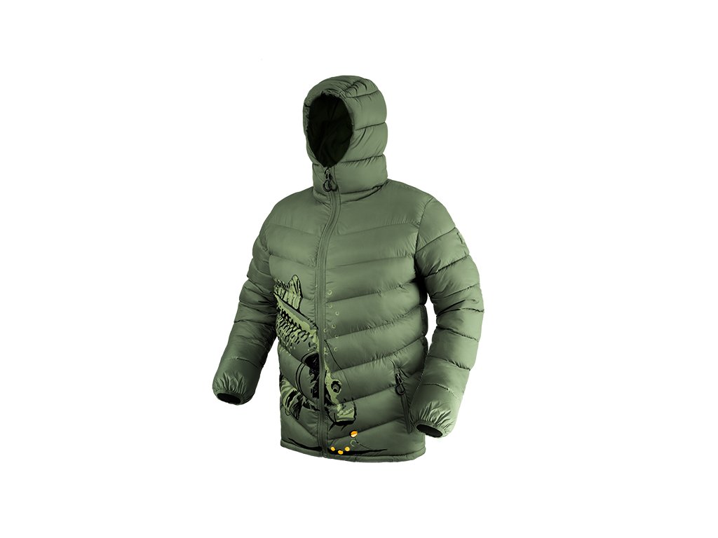 Ak ste rybárom, ktorého neodradí aj to najchladnejšie počasie, bunda Delphin Catch me WINTER CARP je kusom zimného outfitu na ktorý sa môžete spoľahnúť. Hrubá termoizolačná vrstva je zárukou ochrany voči mrazu a vetru, takže ostanete v teple a budete sa cítiť vždy príjemne. Zároveň je bunda veľmi pohodlná a príjemná na nosenie, pričom vám umožňuje voľný pohyb potrebný pre vykonávanie činností počas lovu. Bunda je vyrobená z odolných materiálov a vyznačuje sa kvalitným spracovaním. Na prednej strane bundy sa nachádzajú dve kapsy opatrené kvalitnými zipsami v tmavozelenej farbe. Okrem výborných vlastností sa bunda vyznačuje aj štýlovým dizajnom. Tmavozelená farba doplnená o veľkú grafiku kŕmiaceho sa kapra nenechá chladným nejedného zarytého kaprára. Na zadnej strane sa navyše nachádza pútavý slogan a na rukáve gumená podšívka s logom Delphin.Zloženie: