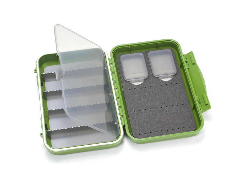 - Kombinácia 5 priehradiek a penovej čelnej strany s mikroplyšom - 2 uzamykateľné úložné priehradky na háčiky a konektory - Sloty pre 20 mušiek MERANIE: D 155 mm Š 105 mm H 40 mm FARBA: Svetlošedá, spálená oranžová, olivová
