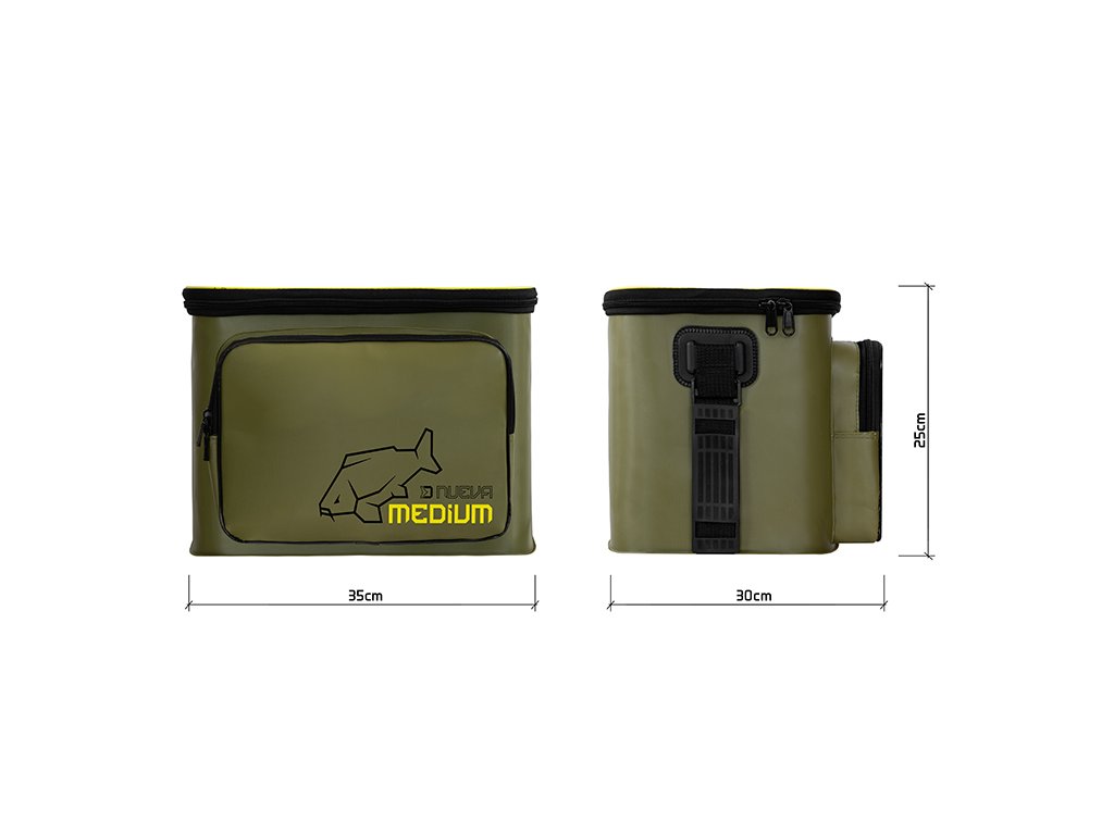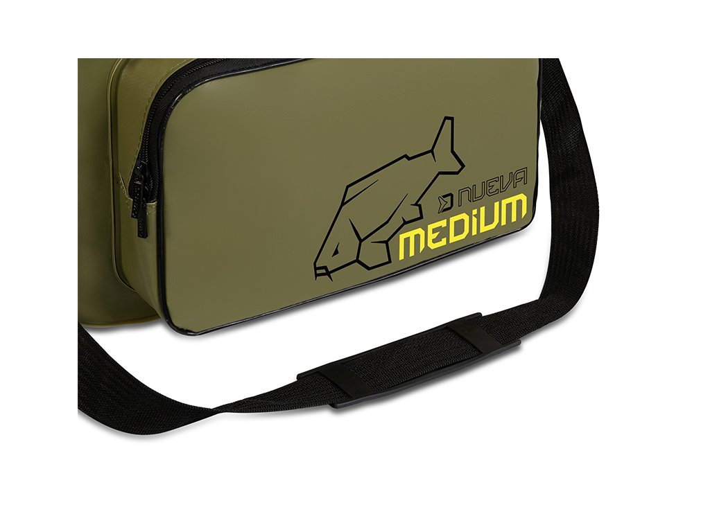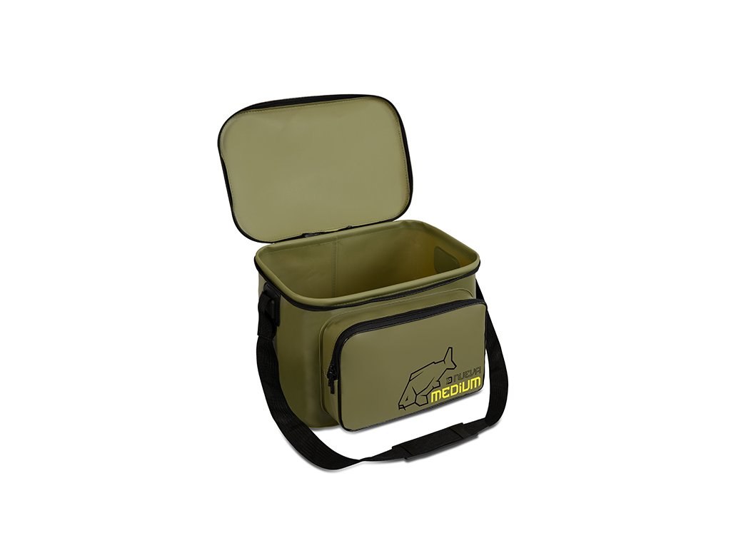 CarryAll taška Delphin NuEVA Medium s rozmermi 35x25x30cm je univerzálna rybárska taška vyrobená z EVA materiálu, ktorá poskytuje dostatočný priestor na uskladnenie najrôznejšieho rybárskeho vybavenia či rôznych nástrah a návnad.Vďaka použitému EVA materiálu a kvalitným zvarom je taška nepremokavá, čím dokonale ochráni obsah vo vnútri aj v nepriaznivých poveternostných podmienkach. Okrem nepremokavosti je tento materiál aj veľmi ľahko umývateľný a neabsorbuje pachy. Bez obáv tak vo vnútri môžete prenášať aj rôzne tekuté potravy, dipy či boostre.