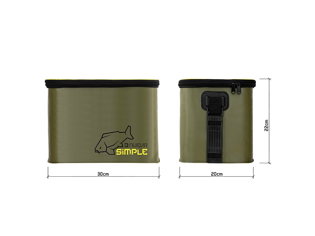 CarryAll taška Delphin NuEVA Simple s rozmermi 30x20x20cm je univerzálna rybárska taška vyrobená z EVA materiálu, ktorá poslúži na uskladnenie najrôznejšieho rybárskeho vybavenia či rôznych nástrah a návnad.Vďaka použitému EVA materiálu a kvalitným zvarom je taška nepremokavá, čím dokonale ochráni obsah vo vnútri aj v nepriaznivých poveternostných podmienkach. Okrem nepremokavosti je tento materiál aj veľmi ľahko umývateľný a neabsorbuje pachy. Bez obáv tak vo vnútri môžete prenášať aj rôzne tekuté potravy, dipy či boostre.
