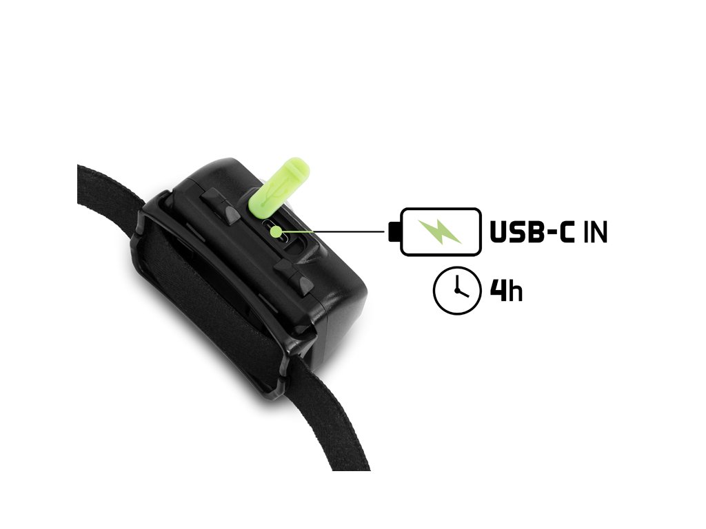 Čelovka má v sebe zabudovanú 1200 mAh batériu, ktorá sa nabíja prostredníctvom USB-C kábla. Plné nabitie trvá približne 4 hodiny. Na tele čelovky sa nachádza indikátor batérie, ktorý zobrazuje aktuálny stav nabitia.