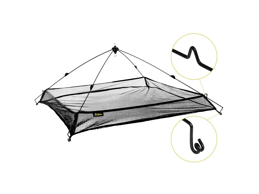 Čereň od značky Delphin má viacero neprekonateľných výhod. Prvou je výborná skladnosť a transportná veľkosť, ďalšou je použitie PE sieťky. Tento model navyše poskytuje vyvýšené kraje- bočnice a to až do výšky 10cm. To umožňuje výrazne eliminovať únikové šance nástrahových rybičiek. Kovové ramená sú výklopné, čo zaisťuje naozaj rýchlu montáž na lovnom mieste. Z vrchnej časti je umiestnený krúžok, určený pre pripevnenie rukoväte s háčikom (nie je súčasťou balenia). Nespornou devízou tohto modelu sú jeho dômyselne spracované ramená, ktoré majú v spodnej časti záhyb v tvare písmena “V“ a na konci sú špirálovo zahnuté. Takáto konštrukcia umožňuje dokonalé upevnenie sieťky, vďaka čomu je jej svojvoľné zošmyknutie z ramien počas lovu takmer nemožné. V neposlednom rade prekvapí aj výborná cena tohto špičkového čereňa!Upozornenie: Lov na čereň musí podliehať pravidlám určeným v rybárskom zákone. Pred použitím čereňa prosím najprv skontrolujte, či spĺňa zákon a legislatívu v krajine, kde sa chystáte loviť.