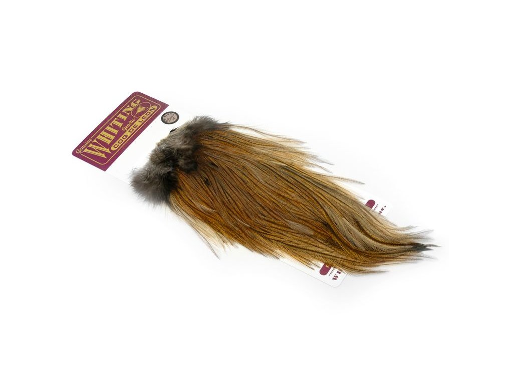 Beautiful quality Coq De Leon Rooster Saddles from Whiting Farms. Excellent natural tailing fibres from the center top feathers, sometimes called the “spade hackles”. Also, provides large size wet and dry fly saddle hackle for Wulff and other large flies.