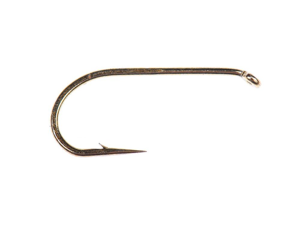 Mierne sklonené oko, bronzový povrch, malý bodec. Použitie: tradičné suché mušky. 25 kusov za balenie