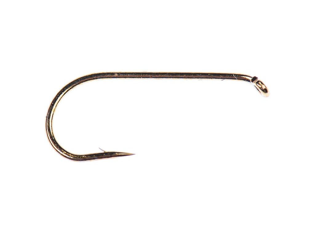 Tradičný háčik so širokým ramienkom na suché mušky a ľahšie nymfové vzory. - Bronzová povrchová úprava - Chemicky naostrené - Malý bodec - Balenie 25 háčikov