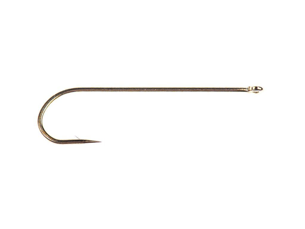 Háčik s rovným očkom a dlhým ramienkom. - Bronzová povrchová úprava - Chemicky naostrené - Malý bodec - Balenie 25 háčikov