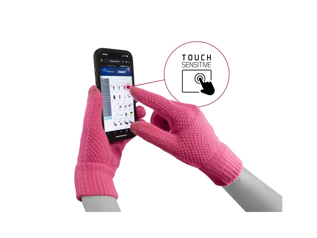 Štýlové pletené rukavice ružovej farby určené pre dámy, ktoré chcú zaujať pri vode ale aj v meste.Použitý úpletový materiál je mäkký a hrejivý, takže bude pre Vás radosť nosiť rukavice v každodennom živote. Nad zápästím je látka hrubšia a vytvarovaná tak aby ho skvele obopínala a chránila pred chladom.
