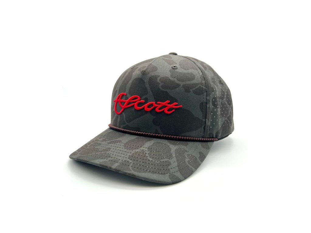 Tmavá kamuflážová päťpanelová čiapka s laserom perforovanými zadnými panelmi a červeným nápisom Scott Scrip na prednej strane. - Laserom perforované bočné a zadné panely zlepšujú prúdenie vzduchu - Škvrnité lano z paracordu prináša klasickú atmosféru - Päťpanelová konštrukcia - Uzavretie Snapback