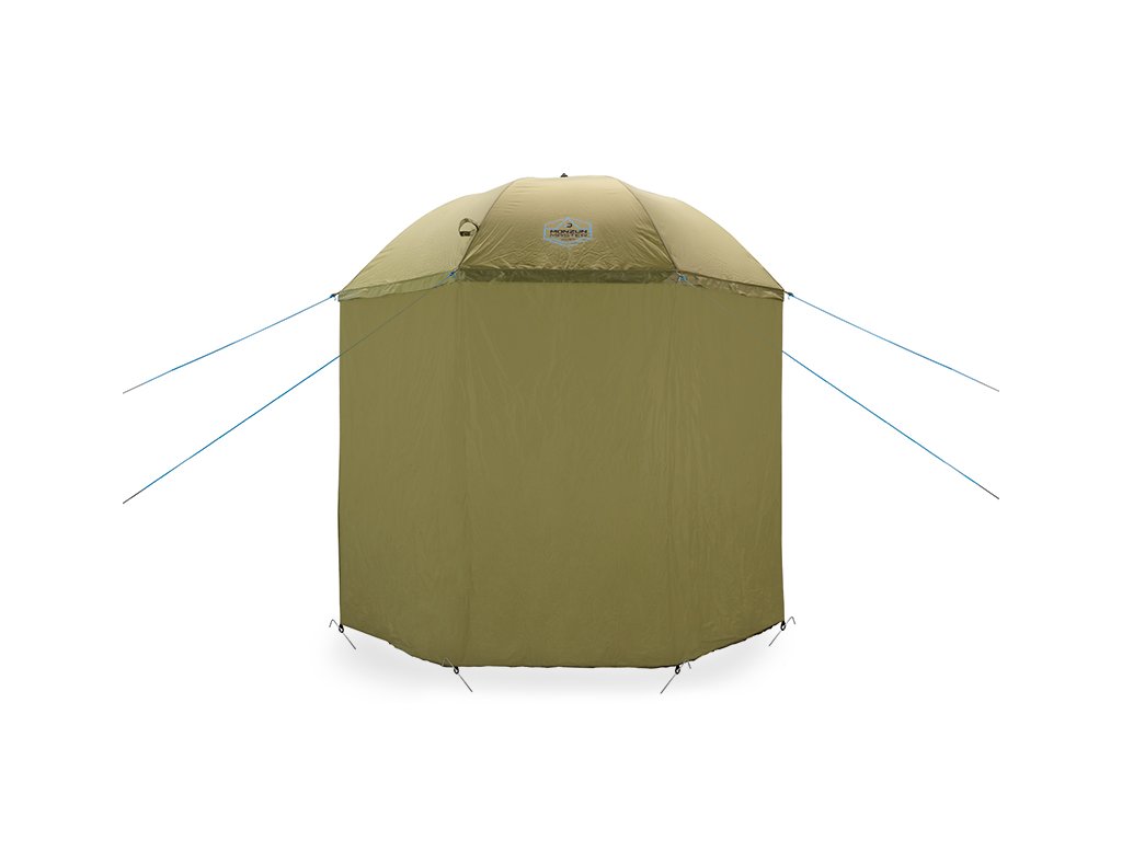 Prémiový dáždnik Delphin MONZUN Master s 3/4 bočnicou oceníte hlavne pri výpravách, kde počasie nie je úplne ideálne. Ochráni pred nepríjemným slnkom, rannou rosou ale aj dažďom ktorý vie intenzitou prekvapiť najmä v letných mesiacoch. Štyri ukotvovacie laná poslúžia výborne pri silnejšom vetre. Svetlo modrá farba lán bola navrhnutá zámerne tak, aby nedochádzalo k zakopnutiu pri zníženej viditeľnosti. Švy dáždnika sú za horúca kompletne podlepené vodeodolnou páskou pre zabezpečenie 100% nepremokavosti aj pri veľkom daždi. K dispozícii je bočná trojštvrťová predĺžená stena, ktorá sa upevňuje pomocou kvalitného zipsu okolo kupole. Spodná časť bočnej steny je osadená úchytmi pre pripevnenie k zemi pomocou zaisťovacích kolíkov (10 kolíkov je súčasťou balenia). Zipsy sú plne prekryté kusom látky pre zabezpečenie ich nepremokavosti. Dáždnik disponuje kĺbom na nastavenie sklonu kupoly, vďaka čomu sa viete prispôsobiť slnečným lúčom ale aj vetru. Výšku dáždnika si prispôsobíte podľa potreby, čo zároveň uľahčí jeho upevnenie aj v členitejšom teréne. Delphin MONZUN je exkluzívnym dáždnikom na každý deň!Technické parametre :