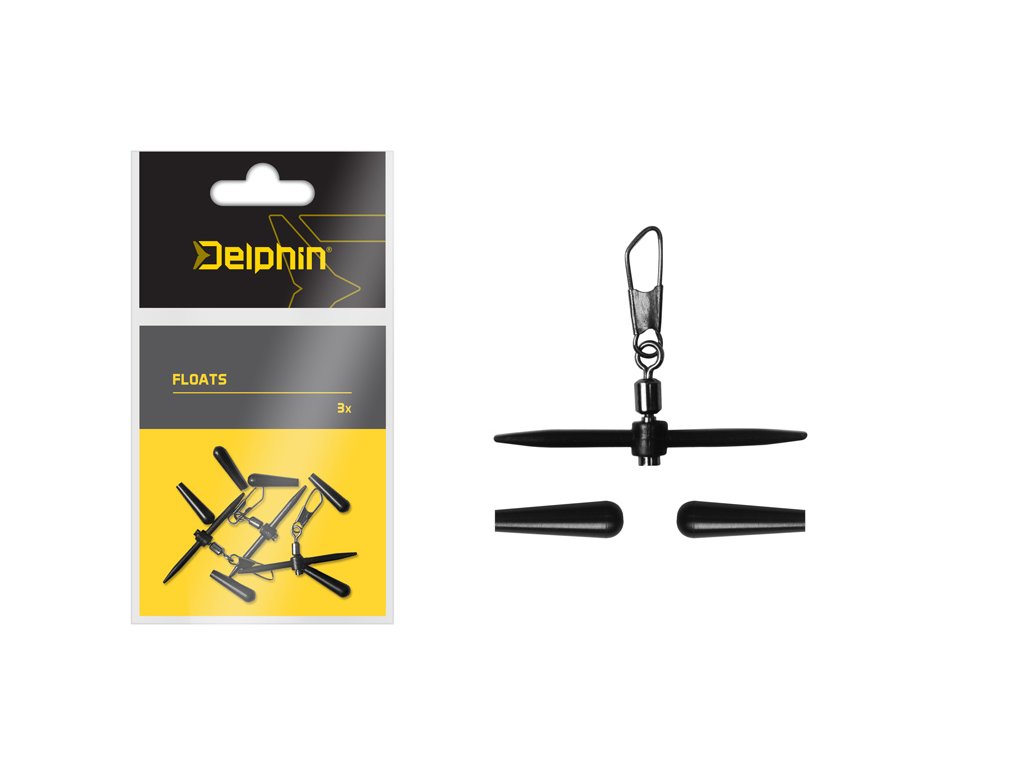 Delphin FLOATS využijete pri love na plavák. Ak potrebujete rýchlo a efektívne prichytiť tzv. anglický plavák, využite tento systém. Pri love "na prepad" je to neoceniteľný pomocník. Na nadväzci máme teda priebežne natiahnuté 2 gumené slzy. Do nich vkladáme plastový systém s obratlíkom a karabínkou. Tak vieme rýchlo meniť ponor plaváka. Pri zhotovení montáže počítajte s hmotnosťou systému FLOATS, ktorý váži 0,75g. V balení sa nachádzajú 3 kompletné zostavy.Dodatočné parametre