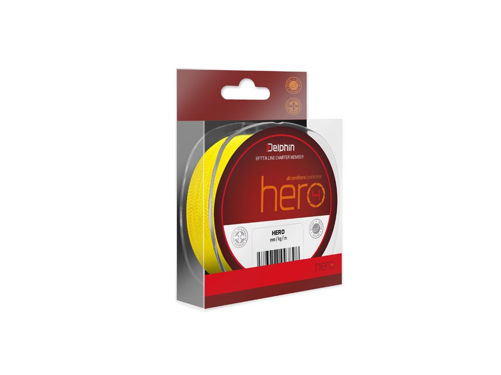 4 vláknová šnúra v cene monofilu!Delphin HERO je spoľahlivá šnúra, pletená zo 4 PE mikrovlákien. Systematickým pletením vlákien je dosiahnutá výborná nosnosť šnúry a takmer nulová prieťažnosť. Záber sa tak okamžite prenáša z nástrahy do rybárskeho prúta, čo umožní reagovať oveľa rýchlejšie ako pri vlasci.