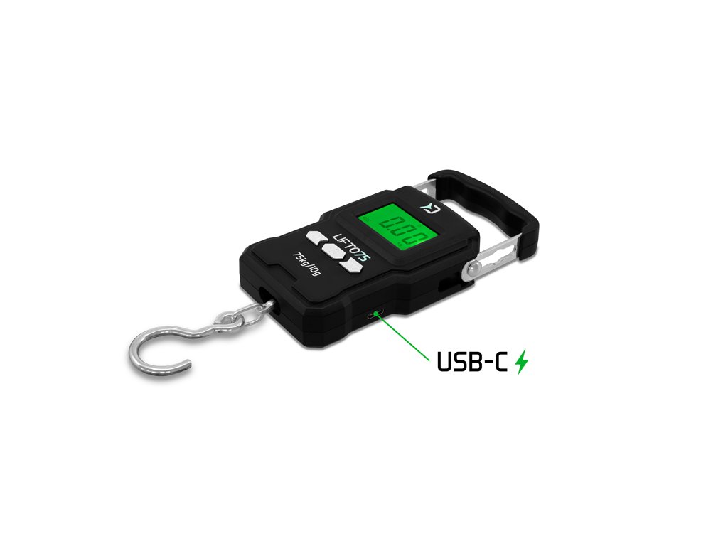 Ak existuje dokonalá váha pre rybára, je to určite LIFTO! Táto nabíjateľná digitálna váha umožňuje meranie hmotnosti v rozmedzí od 10g až do 75kg s vysokou presnosťou. LIFTO má jednoduché ovládanie pomocou troch tlačidiel. Zapnutie, resp. vypnutie váhy prebieha zatlačením stredného tlačidla s označením Power ON. Krátkymi stlačeniami tlačidla UNIT je možné meniť jednotky hmotnosti (kg, lbs, JIN, oz), zobrazované na displeji. Štvrtým stlačením tlačidla UNIT prepnete váhu do formátu teplomeru, ktorý Vám ukáže aktuálnu teplotu v °C. Podsvietenie displeja cez jasný deň môžete vypnúť 2 sekundovým podržaním tlačidla UNIT, čo prispieva k šetreniu batérie . Funkcia TARE umožňuje vynulovanie záťaže na háku, čo je vhodné pre váženie ryby bez skresľujúceho údaju vážiacej tašky.Veľkou výhodou váhy LIFTO je možnosť dobíjania vstavanej batérie s kapacitou 200mAh cez vstup USB-C pre dobíjanie baterky. Dobíjací kábel je súčasťou balenia. Vďaka nízkej spotrebe vydrží veľmi dlho, čo v porovnaní s klasickými váhami šetrí Vašu peňaženku.