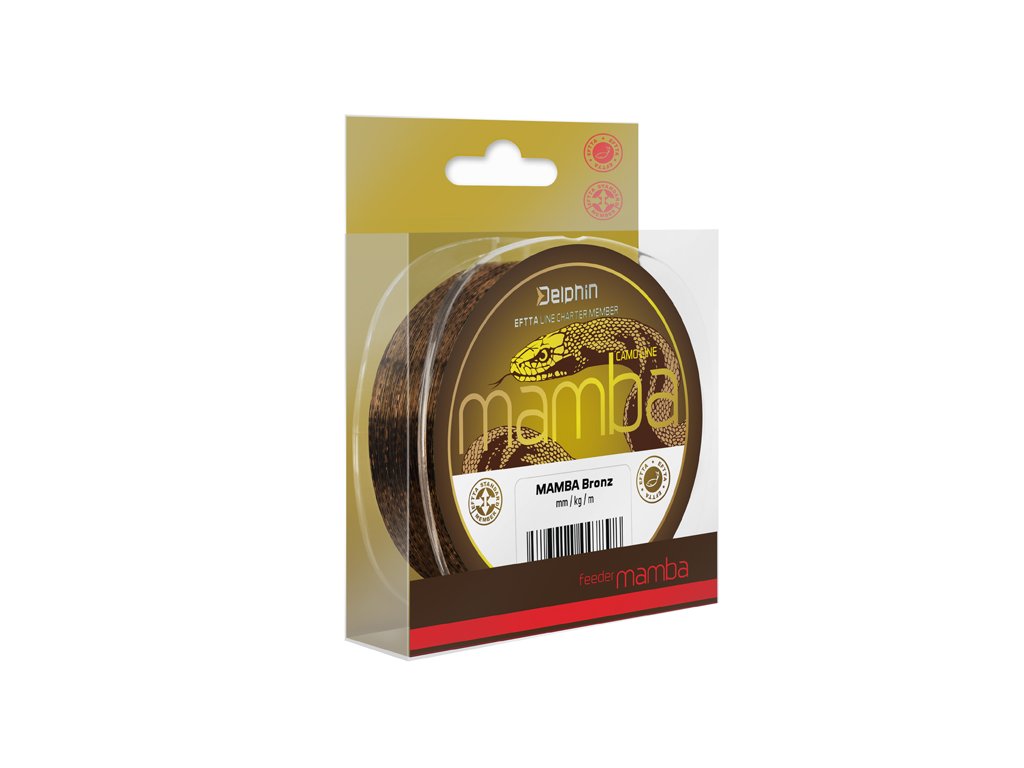 Excelentný feedrový vlasec s unikátnym 3D vzorom. MAMBA disponuje vynikajúcimi vlastnosťami ako pevnosť v uzle, či vysoká nosnosť. Vďaka svojmu jedinečnému kamuflážovému prevedeniu rýchlo splynie s okolitým prostredím. Jeho mimoriadne hladký a jemný povrch umožňuje využitie pri ďalekom nahadzovaní. Vďaka týmto vlastnostiam je Delphin MAMBA považovaný za výborný univerzálny vlasec, na ktorý sa môžete spoľahnúť v každej situácii.MM/KG: 0.16mm/2,5kg, 0.18mm/2,9kg, 0.20mm/3,5kg, 0.23mm/4,3kg, 0.26mm/5,2kg, 0.28mm/6,1kg