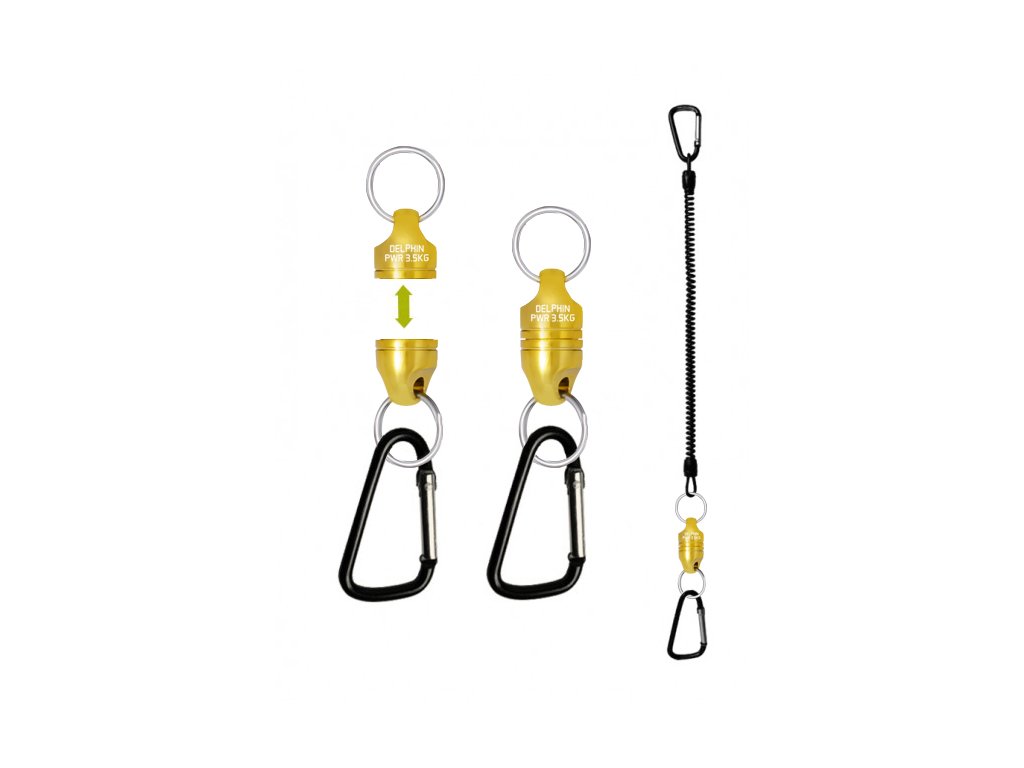 Vysoko praktická pomôcka pre každého rybára ktorý chce mať podberák stále po ruke. Oproti predchádzajúcemu modelu sme vylepšili dizajn. Vďaka výraznejšej farbe viac nebude problém nasmerovať oproti sebe 2 protikusy. O všetko ostatné sa postará extrémne silný magnet s nosnosťou až 3,5kg na plochu menšiu než 1cm štvorcový. Tento magnet je pripevnený ku karabínke oceľovým okom. To robí z tohto celku magnetickej spojky pre podberák nepostrádateľný doplnok ktorý je vždy pripravený na akciu. V balení sa nachádza grátis aj elastický (10-85cm) pogumovaný popruh ktorý je možné pužiť k pripnutiu akýchkoľvek potrebných vecí, napr.: peánu, klieští...Dodatočné parametre