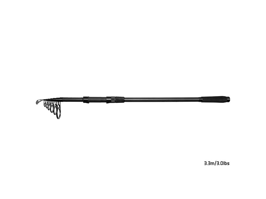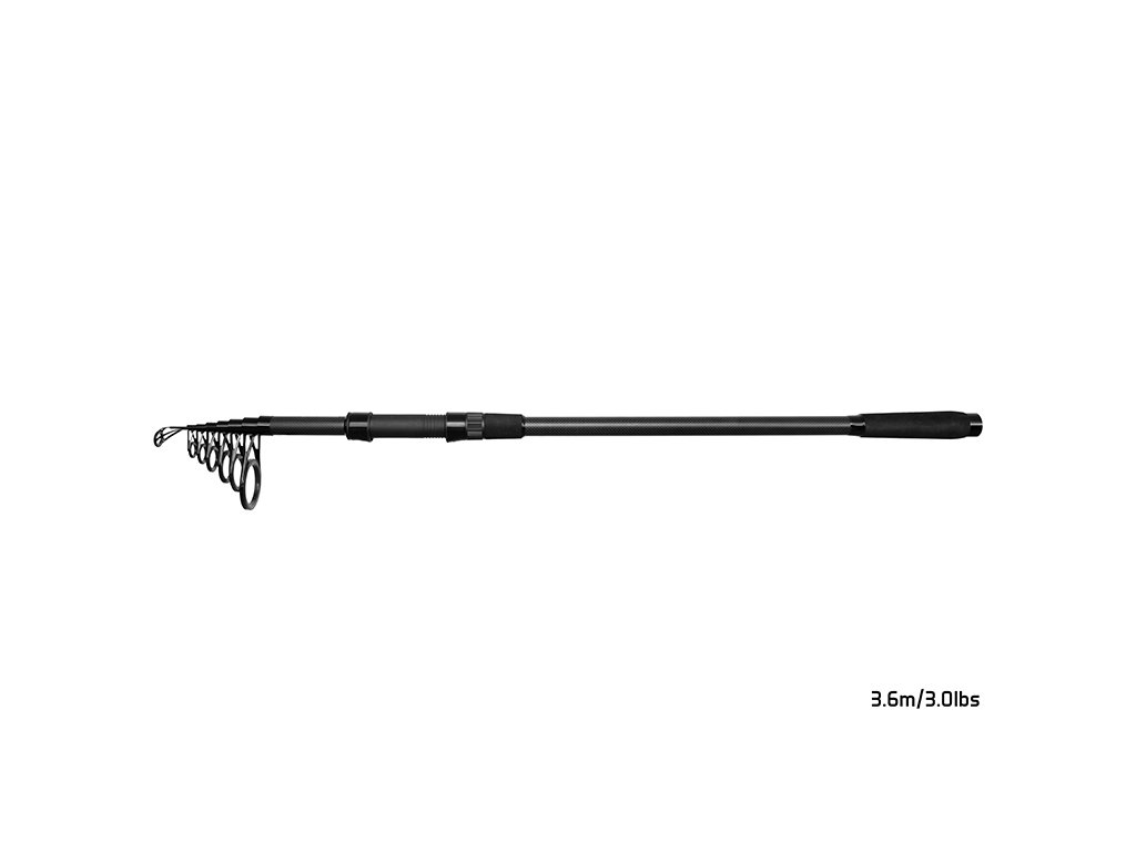 Elegantný, do detailov prepracovaný teleskopický kaprársky prút, v čiernom prevedení. Základom tohto modelu je odladený blank so semi-parabolickou akciou, ktorý vytvára excelentne pracujúci celok, poskytujúci istotu pri nahadzovaní či zdolávaní kapitálnych úlovkov.Všetky výsuvné diely sú osadené pevnými očkami so SIC výplňou, pričom keramika aj rám očiek sú v čiernom prevedení, aby dokonale ladili so zvyškom prúta. Použité spoľahlivé sedlo bez problémov udrží na svojom mieste aj veľkokapacitné navijaky. Samotná rukoväť je delená, pričom na začiatku a tiež na jej konci sa nachádza na dotyk veľmi príjemná EVA pena, ktorá výborne sadne do každej dlane.