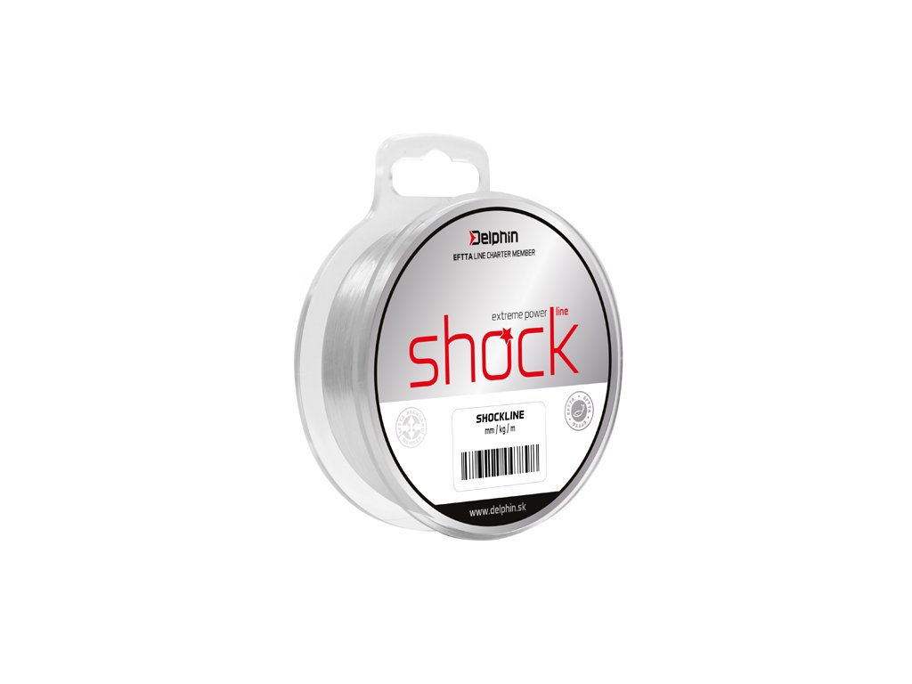 Šokový vlasec od slovenskej značky Delphin, ktorý sa používa ako koncový nadväzec. Dovoľuje nahadzovanie nástrah bez akejkoľvek obavy pred otrhnutím počas krátkodobého preťaženia. Model SHOCK LINE je postavený na oderuvzdornom jadre. Je niekoľkonásobne odolnejší voči oderu oproti štandardným nylonovým vlascom. Výborne sa preto hodí do vôd, ktoré sú plné mušlí, ostrých kameňov a pod. Použitý materiál CPA 6.6 je garanciou najnižšieho súčiniteľa trenia, čo výrazne zvyšuje jeho oderuvzdornosť oproti bežnému materiálu na výrobu vlascov - PA 6. Z tohto dôvodu SHOCK LINE neobsahuje žiadne povrchové oderuvzdorné vrstvy, ktorých aplikácia a proces nanášania výrazne znižujú nosnosť vlasca. FPoznámka: Limitujúcim faktorom nosnosti vlasca je uzol. V prípade, že zbadáte na vlasci nechcený uzol, okamžite odstráňte časť vlasca až po uzol a naviažte koncovú zostavu od znova. Spôsob, akým uväzujete uzol na vlasci, výrazne ovplyvňuje jeho nosnosť. Doťahovanie uzla preto prevádzajte pomaly.