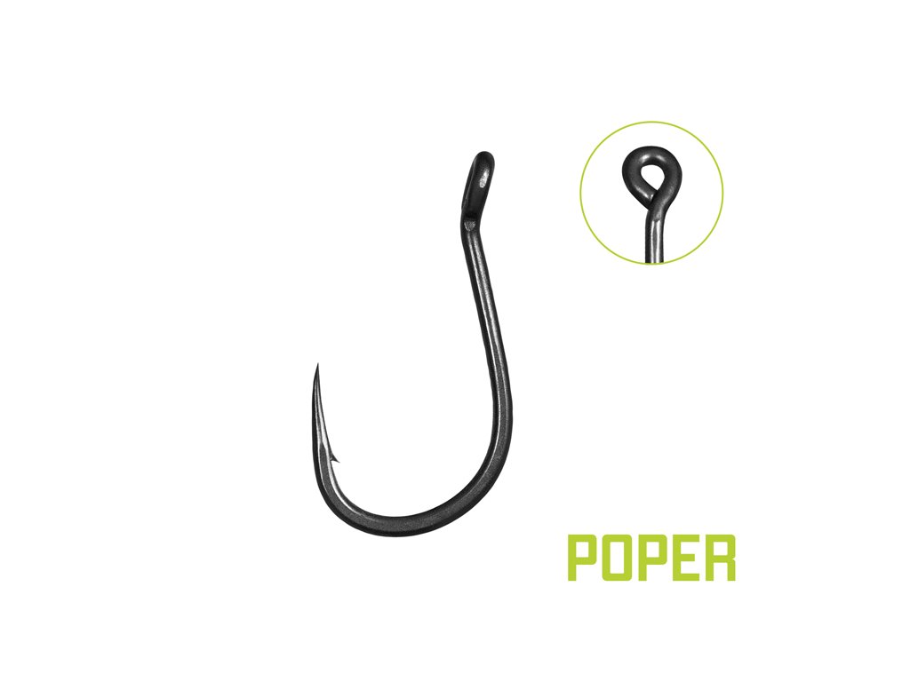 THORN Poper je háčik špecifický očkom vyhnutým do vonkajšej strany. Takéto prevedenie ho predurčuje predovšetkým na použitie s pop-up nástrahami. Výborne sa hodí na tvorbu montáži ako Chod rig, Multi rig, Zig rig a podobne. Vďaka miernemu zakriveniu hrotu do vnútra bude po záseku dokonale sedieť v kaprej tlame.