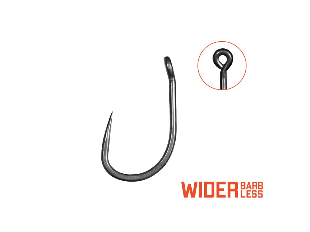 THORN Wider BarbLESS je špecifický svojím priam už legendárnym tvarom typu wide gape. Ide o háčik charakteristický širším oblúkom a rovným ramienkom. Vďaka týmto parametrom ide o veľmi univerzálny a spoľahlivý háčik, ktorý je možné využiť pri rôznych nadväzcoch a nástrahách. V tomto prípade háčik nedisponuje protihrotom, vďaka čomu prenikne do kaprej tlamy omnoho ľahšie.