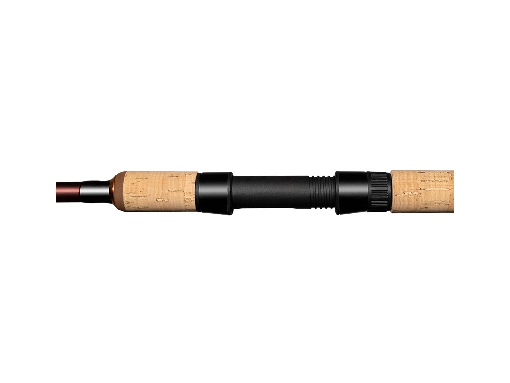 Za blankom však nezaostáva ani prepracovaná rukoväť. Tá je tvorená kombináciou korku a ergonomicky tvarovanej EVA peny. Okrem toho, že ideálne sadne do rúk, vytvára aj veľmi pekný vizuálny prvok. Presné rozostavenie očiek (prvé dve dvojstopkové, ostatné jednostopkové) v spojení s použitým špičkovým uhlíkom 30T garantujú dokonalé vyváženie tohto exkluzívneho prútu.
