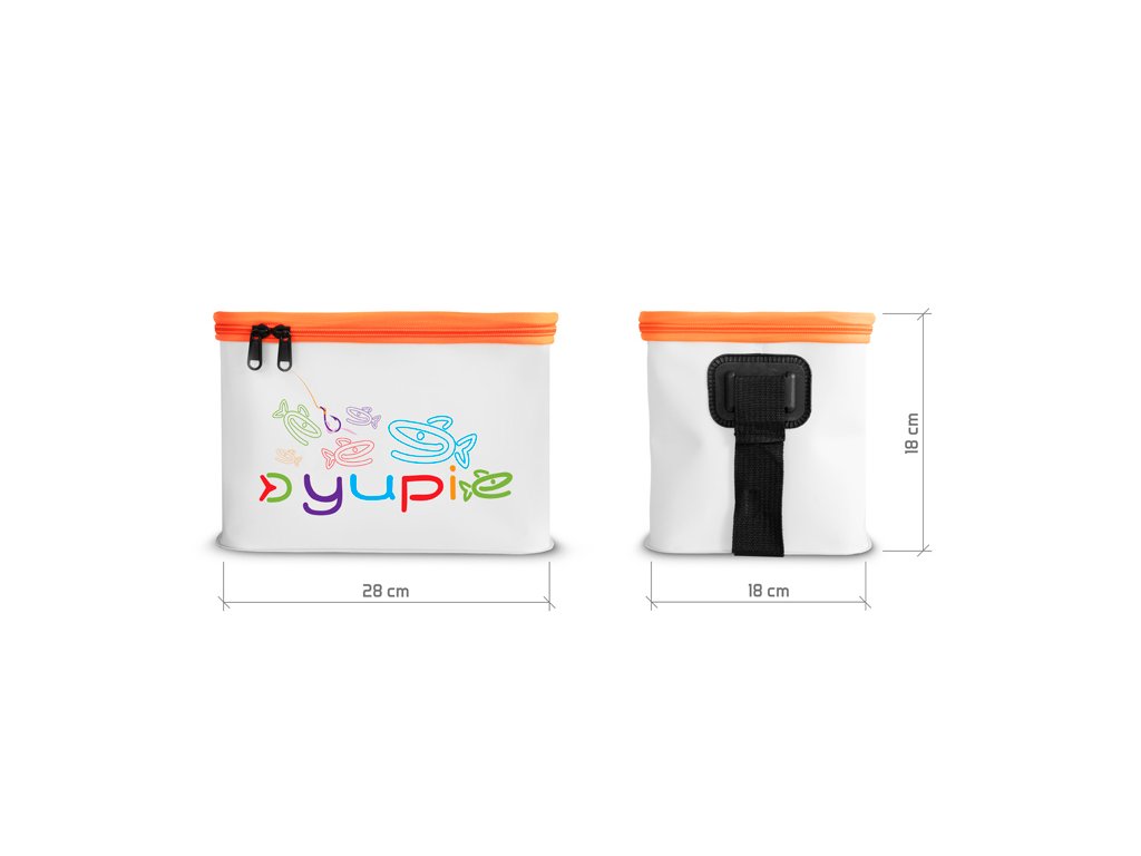 Taštička YUPIE je vyrobená z EVA materiálu, vďaka čomu je ľahko umývateľná, odolná voči prípadnému poškodeniu a zvládne tiež hrubšie zaobchádzanie. Je doplnená aj praktickým čiernym popruhom pre jednoduchší transport na ramene.