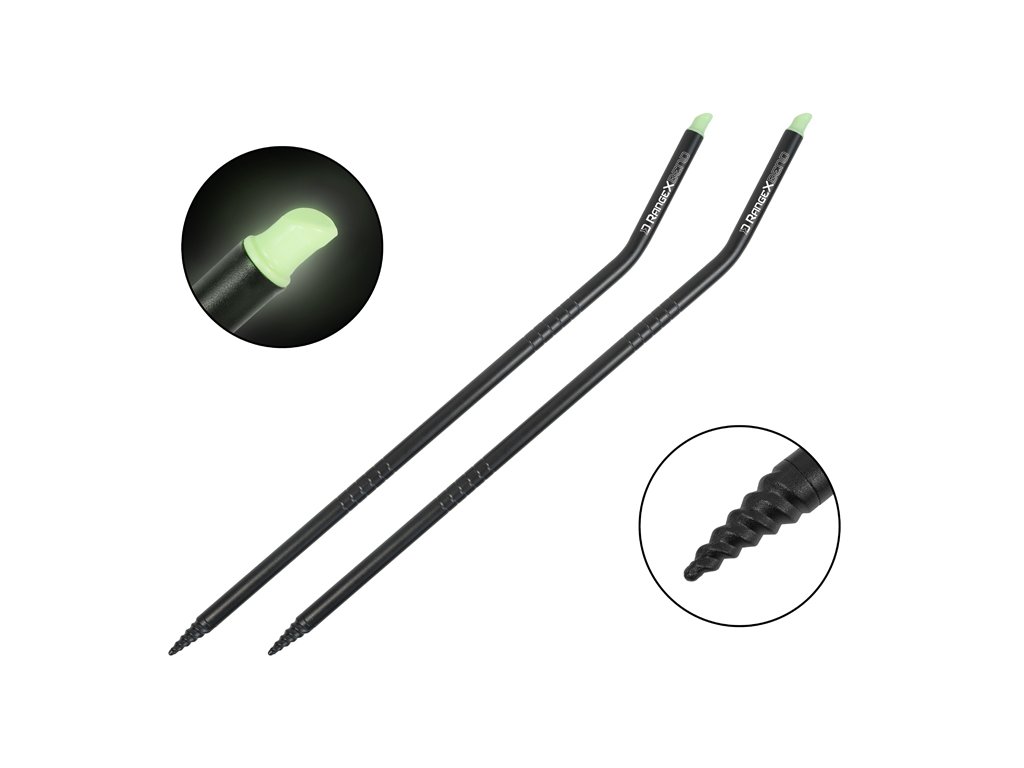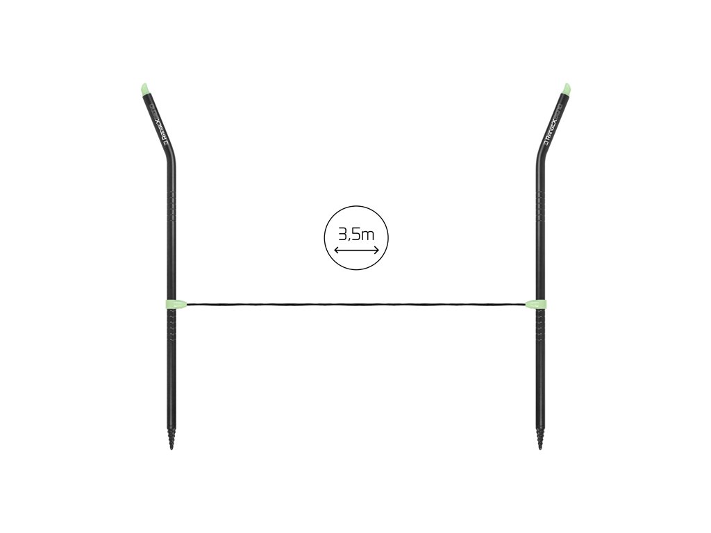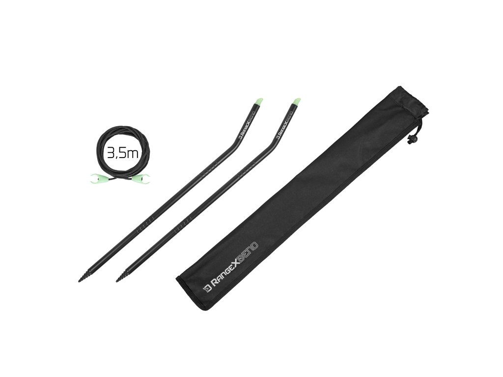 RangeX BEND pozostáva z dvoch hliníkových tyčí so zárezmi. Tieto zárezy slúžia nato, aby sa do nich vlasec či šnúra ukladali a počas vymeriavania vzdialenosti tak nehrozí neželané skĺznutie vlasca z tyče. Pre ešte vyššiu spoľahlivosť sú horné konce tyčí zahnuté, aby sa zabránilo vyskočeniu vlasca pri manipulácii. Pre jednoduchšie používanie v šere či tme tyče disponujú fosforeskujúcimi koncovkami, ktoré sa po nasvietení rozžiaria. Kvôli lepšej manipulácii pri zapichovaní do zeme, sú dištančné tyče na spodnom konci vybavené pevným hrotom so závitom. Samozrejmosťou je vymeriavací povraz s dĺžkou 3,5 metra, ktorý je na oboch koncoch opatrený okami pre uchytenie o tyče. V základe RangeX BEND dostanete v praktickom textilnom puzdre tak, aby ste mali vždy všetko pokope.