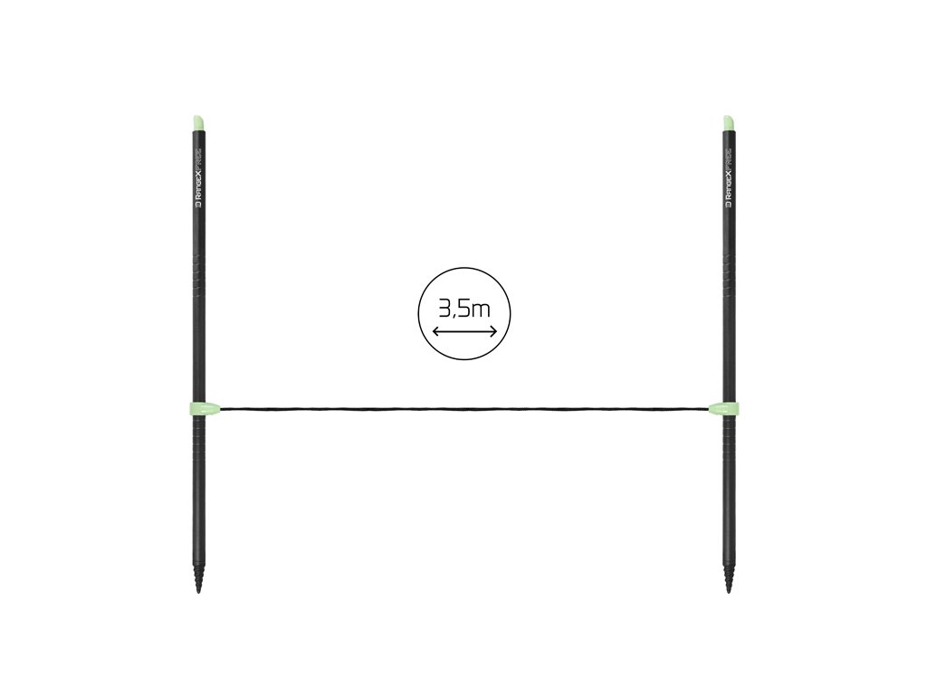 RangeX FREE pozostáva z dvoch hliníkových tyčí so zárezmi. Tieto zárezy slúžia nato, aby sa do nich vlasec či šnúra ukladali a počas vymeriavania vzdialenosti tak nehrozí neželané skĺznutie vlasca z tyče. Pre jednoduchšie používanie v šere či tme sú tyče vybavené fosforeskujúcimi koncovkami, ktoré sa po nasvietení rozžiaria. Pre lepšiu manipuláciu pri zapichovaní do zeme, sú dištančné tyče na spodnom konci vybavené pevným hrotom so závitom. Samozrejmosťou je vymeriavací povraz s dĺžkou 3,5 metra, ktorý je na oboch koncoch opatrený okami pre uchytenie o tyče. V základe RangeX FREE dostanete v praktickom textilnom puzdre tak, aby ste mali vždy všetko pokope.