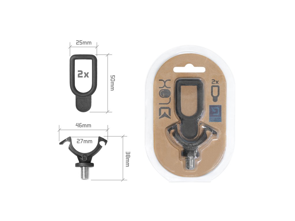 Inovatívnym prvkom, ktorý robí Delphin LOX praktickým a užitočným, je poistná gumička na zaistenie prúta. Po umiestnení prúta do držiaku ju stačí natiahnuť cez dva výrezy po bokoch držiaku, čo zaručí úplnú istotu proti nechcenému vypadnutiu. Gumička má rozšírenú časť na uchopenie, za ktorú ju pri zábere jednoducho vytiahnete a môžete sa pustiť do zdolávania. V prípade straty alebo opotrebenia poistnej gumičky sa v balení ako bonus nachádza aj náhradná.