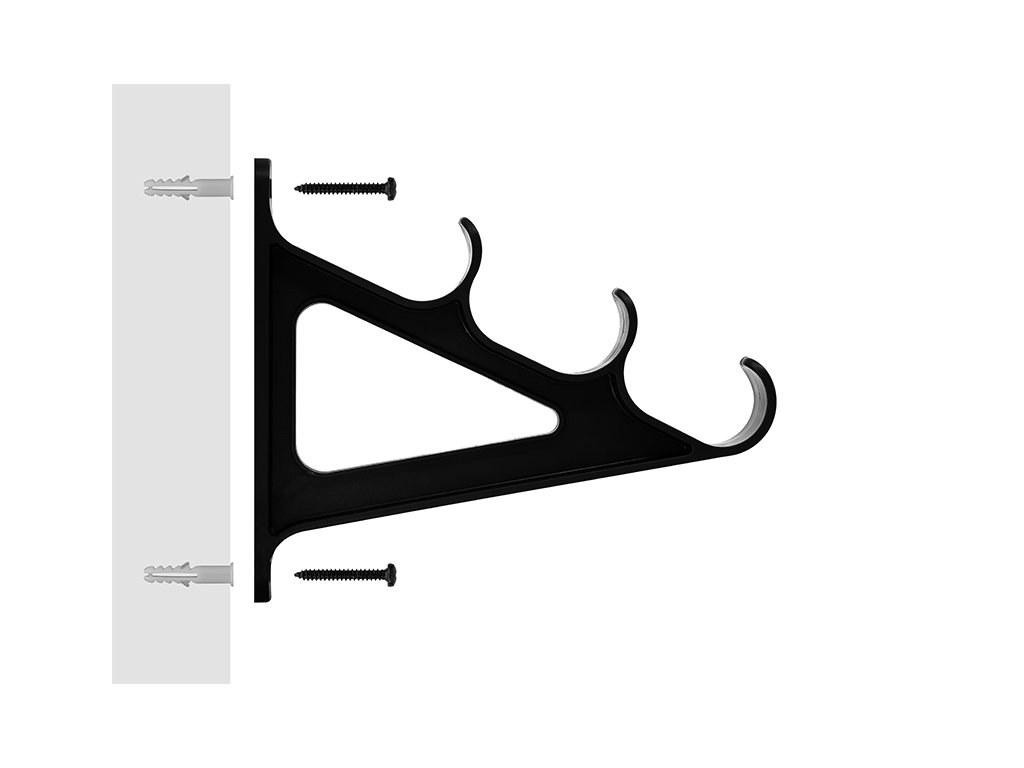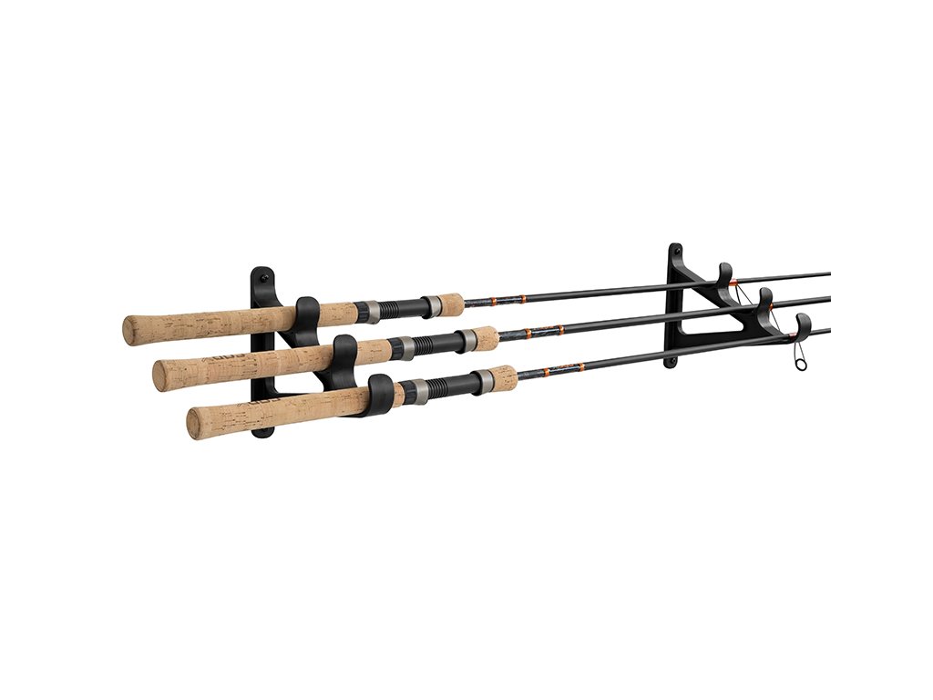 Set dvoch držiakov na prúty vyrobených z kvalitného a odolného plastu. Držiaky sú dizajnované tak, aby poňali minimálne 3 rybárske prúty s tým, že háčiky sú špeciálne vytvarované proti neželanému, náhodnému vypadnutiu.Každý držiak má dva otvory slúžiace na prichytenie ku stene alebo ku kovovému perforovanému držiaku. Súčasťou balenia je 5 kusov hmoždín a skrutiek, takže vám postačuje vŕtačka a skrutkovač a môžete začať s inštaláciou.