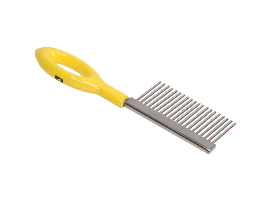 For combing out fly tying materials such as natural and synthetic fur. The solution to unruly materials at the vise or mangled streamers on the water. The ergonomic powder coated tool is easy find and comfortable in hand, and the stainless steel shaft and teeth make quick work of messy flies at the bench or on the water.