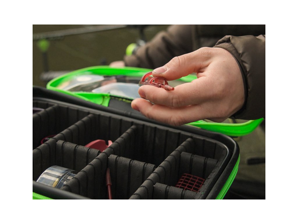 Delphin REAXE FlexiCASE je dômyselne navrhnutý organizér z EVA materiálu, ktorý Vám umožní uloženie rôzneho feedrového vybavenia, od krmítok a háčikov až po samotné nástrahy.Vďaka použitému EVA materiálu a kvalitným zvarom je organizér nepremokavý, čím dokonale ochráni Vašu rybársku výbavu aj počas dažďa. Okrem nepremokavosti sa tento materiál veľmi ľahko umýva a neabsorbuje pachy.