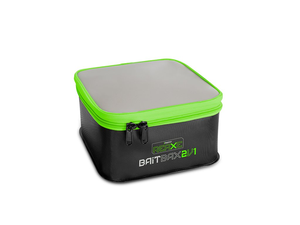 Delphin BaitBAX je praktický set z EVA materiálu, pozostávajúci z kompaktnej tašky, v ktorej sa nachádza vyberateľná miska.Je určená pre skladovanie rôznych feedrových nástrah, atraktorov, taktiež pre miešanie malých množstiev krmiva, method feedrových peletiek, alebo pre dolievanie vody. Vďaka použitému EVA materiálu je set vodeodolný, ľahko umývateľný, odolný voči poškodeniu a neabsorbuje nechcené pachy.