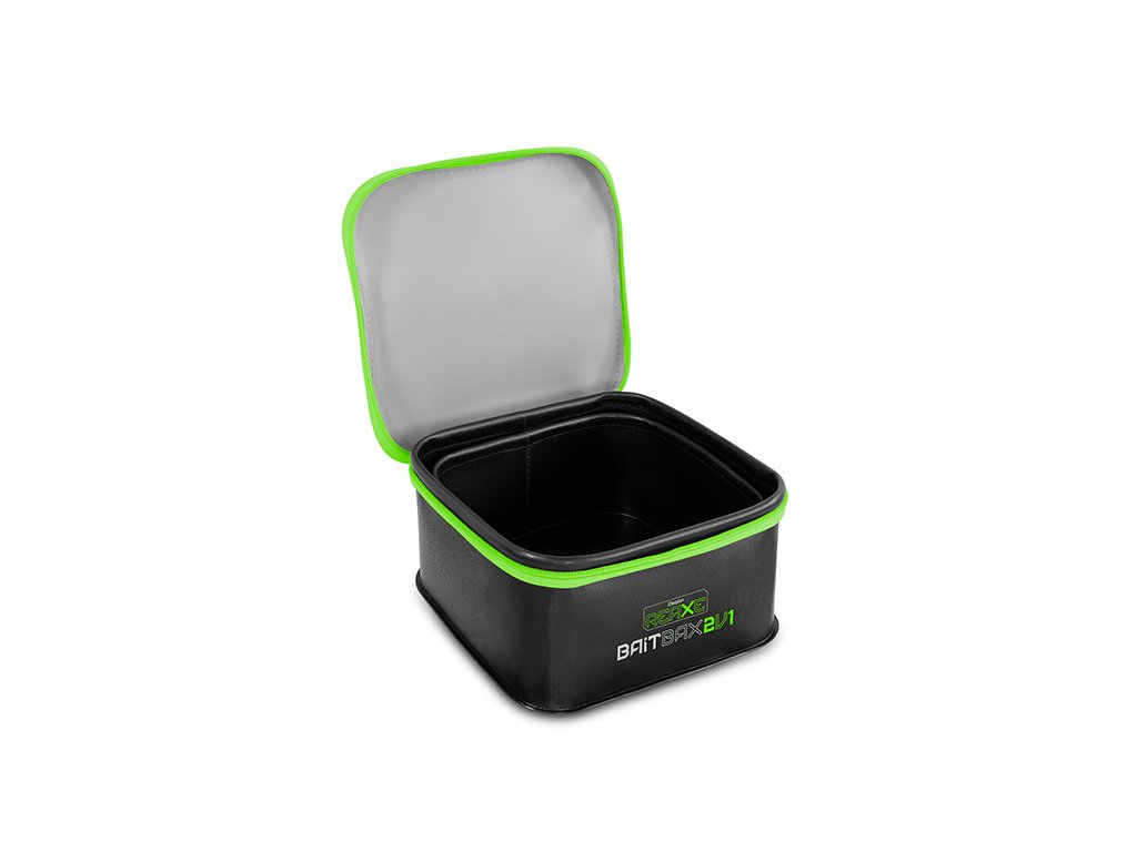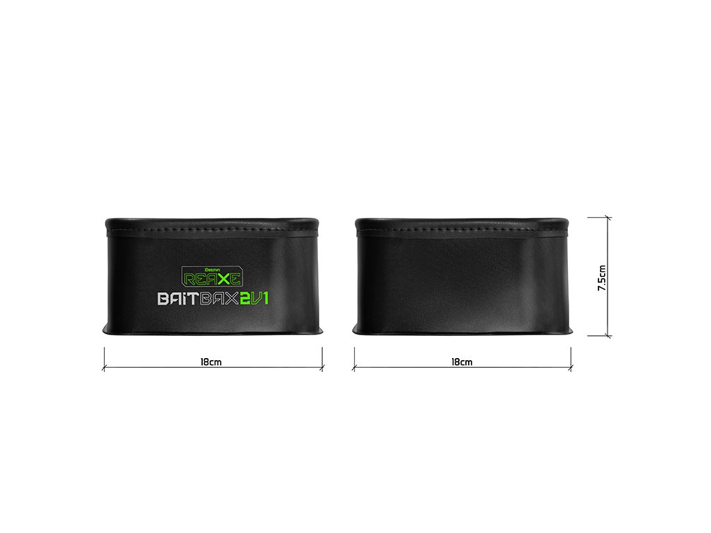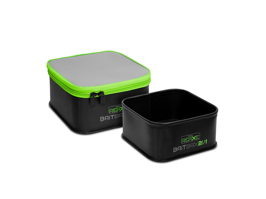 EVA set BaitBAX je čiernej farby v kombinácií s výraznou zelenou grafikou, čím excelentne ladí s inými produktami feedrovej série REAXE. Taštička je opatrená kvalitným zipsom, určeným na kompletné uzatvorenie. Jednotlivé komponenty setu do seba skvele zapadajú, takže po ukončení vychádzky ich viete do seba poľahky vložiť, čím ušetríte miesto vo svojej výbave.