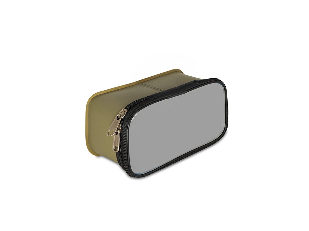 Univerzálna taštička kompaktných rozmerov slúžiaca na uskladnenie a prenos rôzneho drobného príslušenstva, nástrah či bižutérie. Vďaka svojím rozmerom zaberie vo vašej výbave minimum miesta. Je vyrobená z EVA materiálu, ktorý je nepremokavý, veľmi ľahko umývateľný a neabsorbuje pachy. Bez obáv tak môžete vo vnútri prenášať aj rybárske esencie či dipy.Veko je vyrobené z priehľadného materiálu, vďaka ktorému budete mať vždy dokonalý prehľad o tom, čo sa nachádza vo vnútri. V ponuke sú dve veľkostné varianty, pričom menšia má označenie M a väčšia L.
