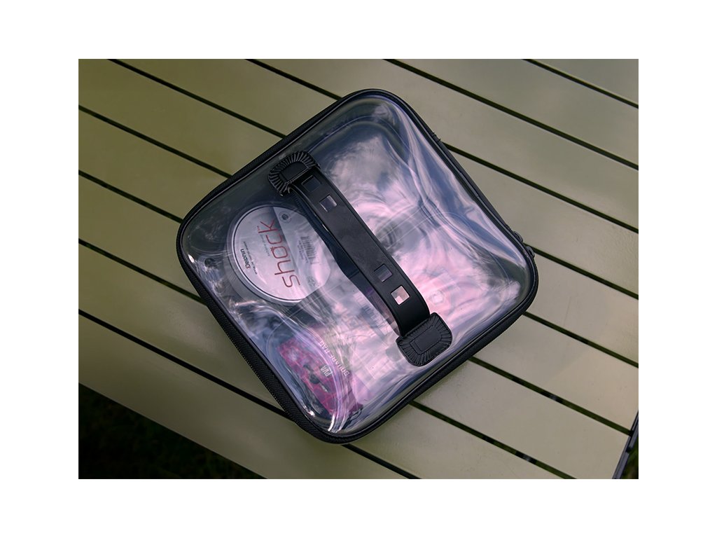 Je univerzálna taška slúžiaca na uskladnenie a prenos rôzneho príslušenstva, nástrah či bižutérie. Je vyrobená z EVA materiálu, ktorý je nepremokavý, veľmi ľahko umývateľný a zároveň neabsorbuje pachy, takže môžete bez obáv prenášať aj rôzne rybárske esencie či dipy.Veko je vyrobené z priehľadného materiálu, vďaka ktorému budete mať vždy dokonalý prehľad o obsahu tašky.