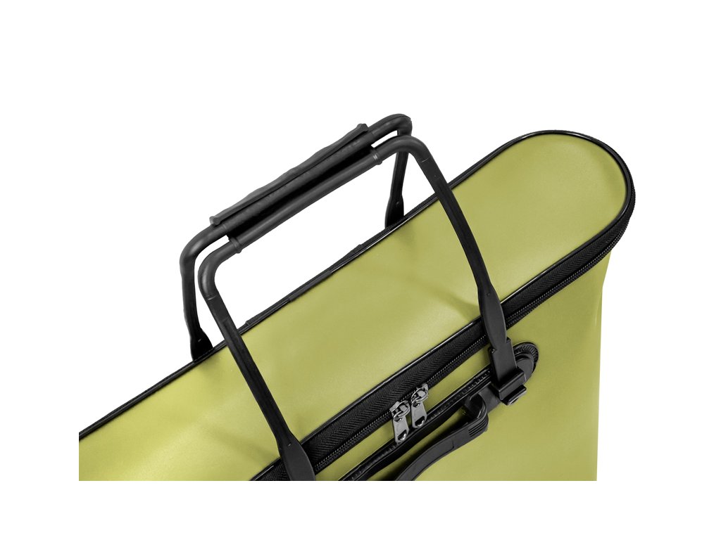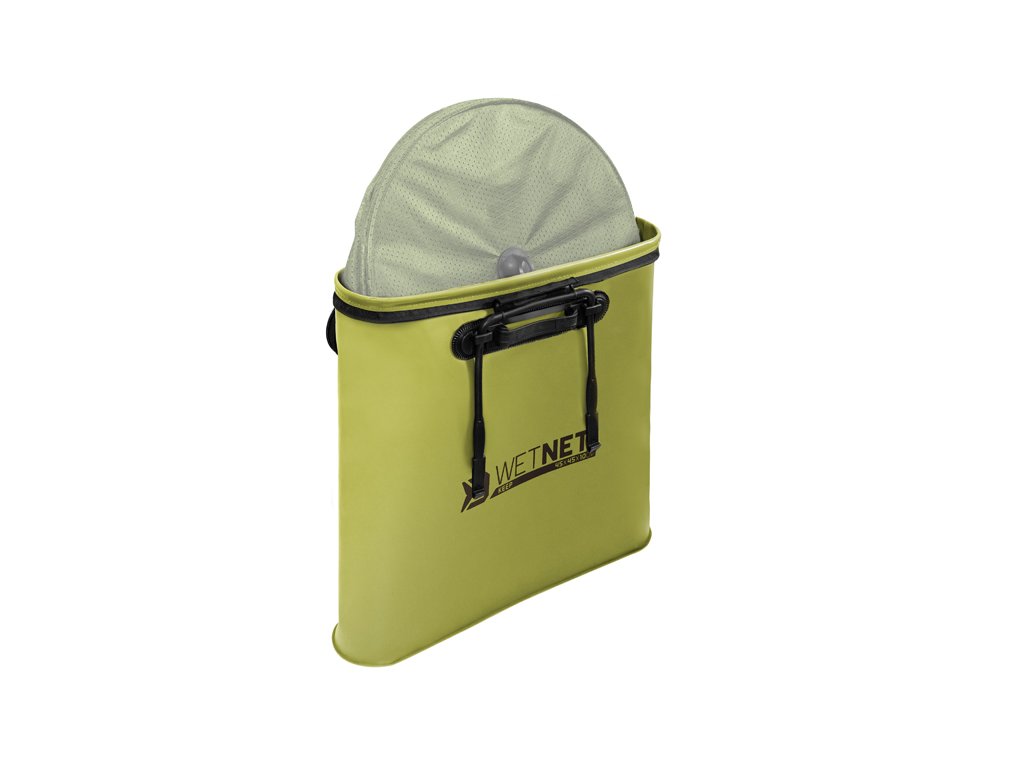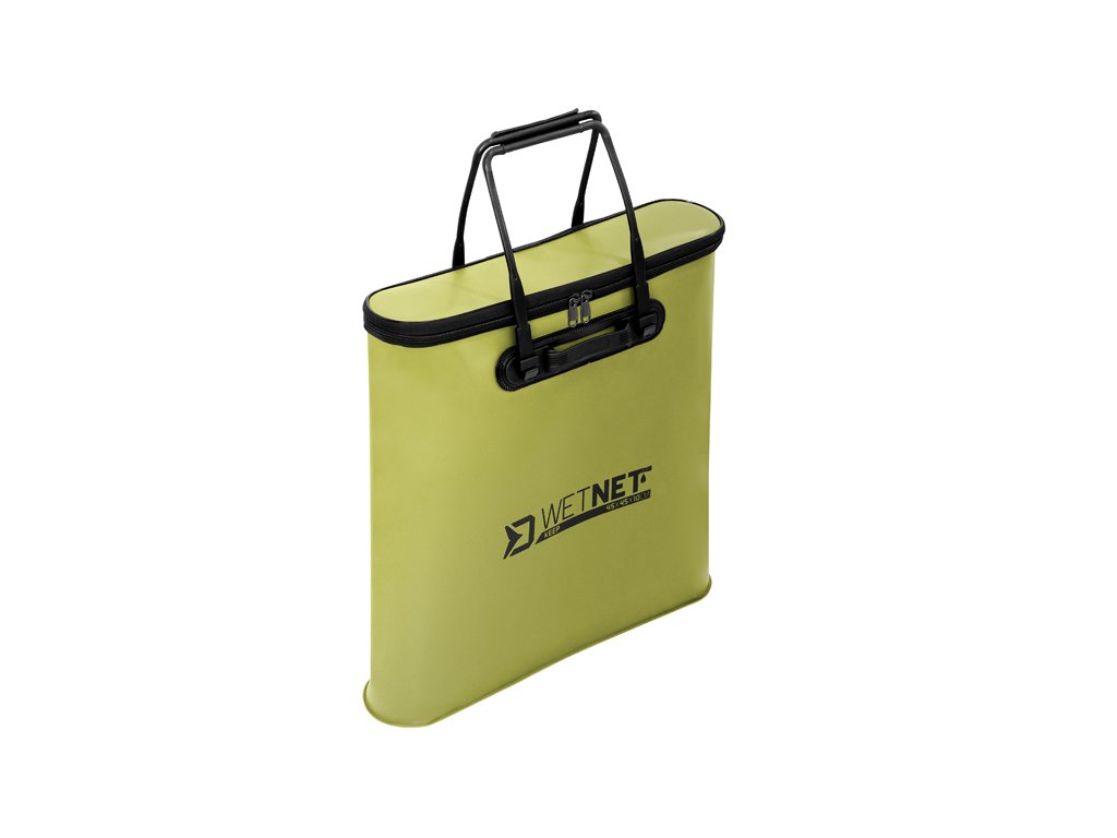 Delphin WetNET keep je vodeodolná taška, navrhnutá špeciálne pre uloženie a transport prechovávacích sieťok či podberákových hláv. EVA materiál, z ktorého je vyrobená je absolútne nepremokavý. Vďaka tomu je vhodná na prenášanie mokrých sieťok, pričom nehrozí vytečenie vody po iných komponentoch výbavy, prípadne v aute. Výhodou materiálu je taktiež to, že neabsorbuje nepríjemné pachy a po zapnutí tašky im zamedzuje akémukoľvek úniku. Materiál je taktiež veľmi ľahko umývateľný a pevný, vďaka čomu si WetNET drží svoj tvar za všetkých okolností. Rukoväte sú navrhnuté z pevného plastu a je možné ich zasunúť pozdĺž steny tašky tak, aby nijako nebránili a nezavadzali pri vkladaní, resp. vyberaní sieťky. Vďaka tomuto systému sú manipulácia a transport veľmi pohodlné. Delphin WetNET Keep je dizajnovaná v neutrálnej zelenej farbe s čiernymi doplnkami, čím veľmi dobre zapadne do okolitého prostredia a stane sa veľmi praktickou súčasťou rybárskej výbavy.Technické parametre: