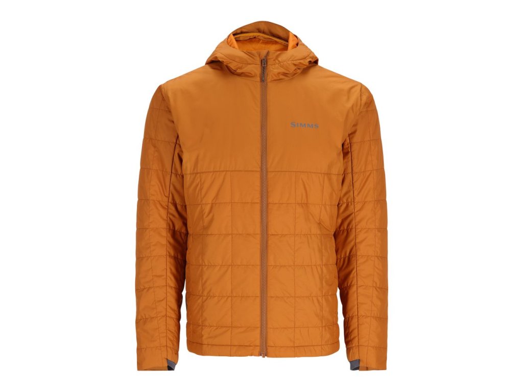 - Primaloft® Black Eco insulation 60g (body) with recycled polyester shell and lining - Fully insulated hood - Upper front and back body features internal quilting, providing a smooth exterior for abrasion resistance when worn with waders or bibs - Zippered handwarmer pockets and internal chest zippered pocket on wearer's right FABRIC TECHNOLOGY: - Shell - 58gsm 100% recycled polyester-ripstop with DWR - Insulation - PrimaLoft® Black Eco insulation, 60g (body) and hood), 40g (sleeves) - Lining - 47 gsm, 100% recycled polyester taffeta with DWR