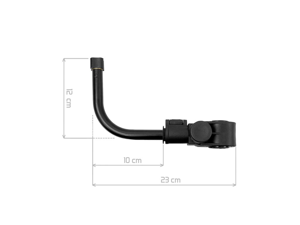 Univerzálny feedrový držiak v tvare písmena L, vhodný na použitie napríklad v kombinácií s držiakom prútov, prípadne ako držiak feedrovej sieťky. Taktiež ho je možné použiť ako samostatný zadný držiak prúta. Disponuje úchytom s variabilným priemerom 25, 30 a 36 mm vďaka čomu pasuje takmer na všetky štandardne vyrábané kreslá na trhu. Výhoda úchytu spočíva taktiež v tom, že je opatrený klipom, vďaka ktorému nie je nutné zakaždým dávať dole z kresla celý systém. Jednoducho stačí odistiť klip a vytiahnuť držiak, zatiaľ čo úchyt ostáva pripravený na kresle pre ďalší lov. Devízou tohto úchytu je taktiež to, že je rovnaký pri viacerých držiakoch zo série ATOMA. Vďaka tomu je možné držiaky medzi sebou podľa potreby meniť bez nutnosti odmontovania celého úchytu. Držiak disponuje štandardným závitom ale taktiež spojovacím konektorom, na ktorom je závit s väčším priemerom. Vďaka tomu k tomuto držiaku “sadne“ každý štandardne vyrábaný držiak prútov prípadne sieťka.Technické parametre: