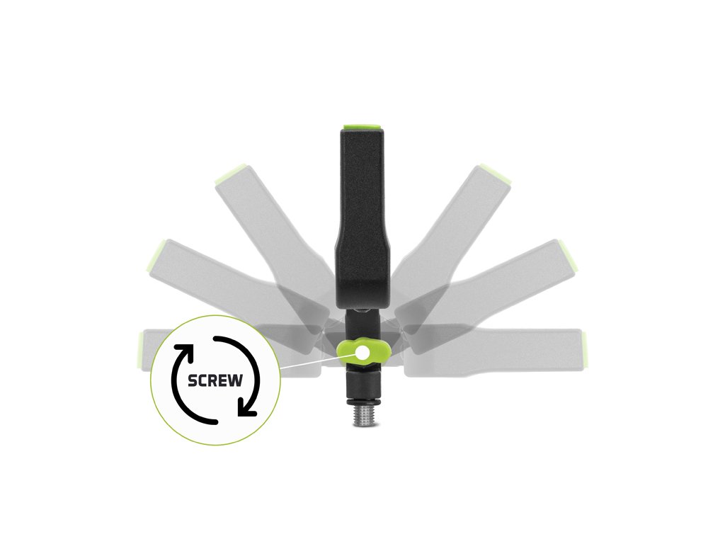 V spodnej časti je na rám pripevnený plastový kĺb s otočným systémom, poskytujúci možnosť polohovania držiaku v rôznych uhloch podľa Vašich potrieb a podľa podmienok pri vode. EvaBACK disponuje tiež univerzálnym závitom kompatibilným s väčšinou rázsošiek, feedrových držiakov a ramien.