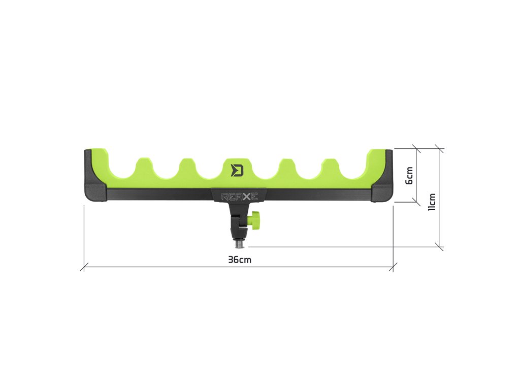 Farebne je držiak ladený do čierno-zelena a tým skvele zapadne medzi ostatné produkty z radu REAXE.