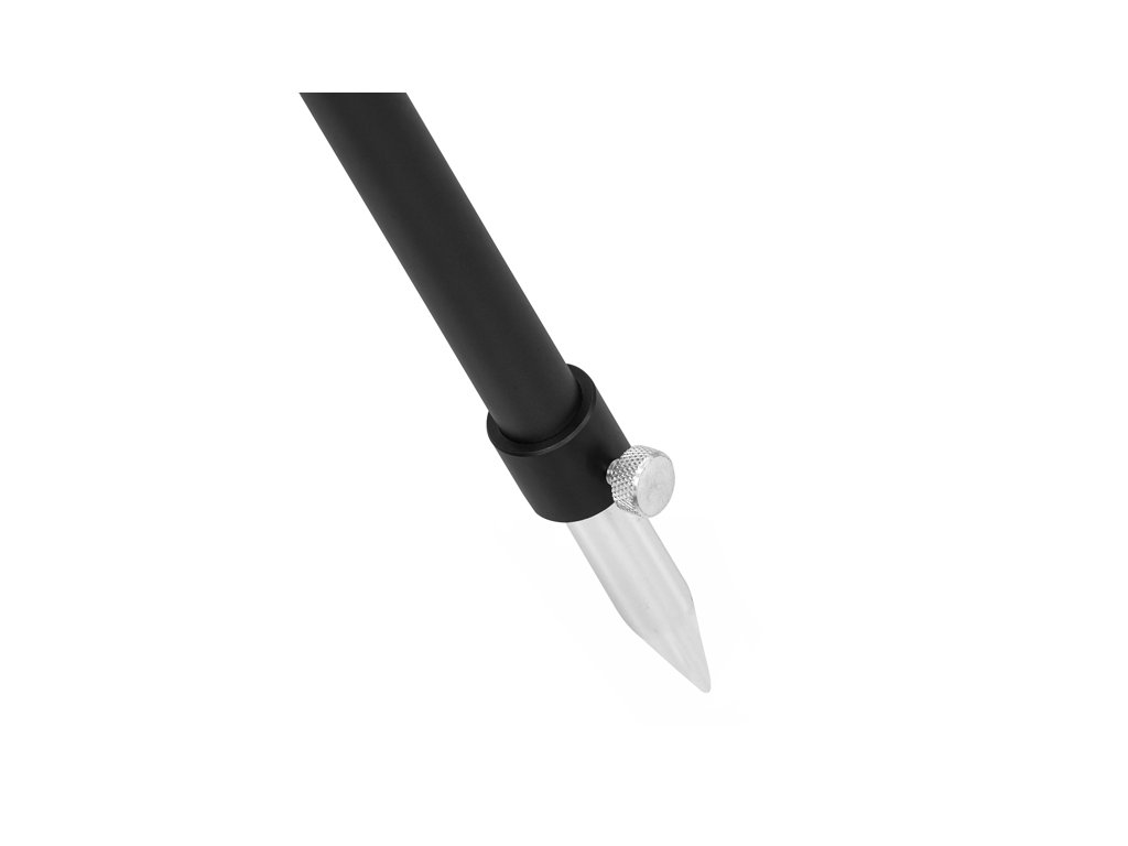 Kompaktný feedrový stojan na prúty s tromi podpornými nohami, navrhnutý v dizajne REAXE, charakteristickom pre novú radu feedrových produktov z dielne firmy Delphin. Konštrukcia stojana je kompletne vyrobená z hliníku, bez použitia akýchkoľvek plastových častí. Takéto prevedenie minimalizuje možnosť poškodenia, resp. ulomenia niektorej z častí a zaručuje veľmi nízku hmotnosť. Skvelú stabilitu stojana zabezpezpečujú tri teleskopické nohy, ktoré zabraňujú jeho svojvoľnému prevráteniu pri záberoch alebo vetre. Nohy sú ukončené ostrými hrotmi, ktoré umožňujú ich zatlačenie do zeme, čím je možné dosiahnuť ešte lepšiu pevnosť celku. Vďaka teleskopickým nohám je možné ho vhodne prispôsobiť aj nerovnému terénu. V strede stojana je osadená rázsoška, ktorej výšku možno nastaviť pomocou masívneho skrutkového mechanizmu. Ten jej po dotiahnutí spoľahlivo zabraňuje akémukoľvek svojvoľnému pohybu. Rázsoška disponuje univerzálnym závitom, vďaka čomu je možné k nej pripevniť akýkoľvek feedrový držiak prútov, hrazdu, prípadne signalizátor. Napriek svojím nenápadným transportným rozmerom je možné stojan prostredníctvom teleskopických nôh, výsuvnému stredovému mechanizmu a taktiež teleskopickej rázsoške vysunúť do úctyhodnej výšky až 150 cm, čo určite milo prekvapí nejedného používateľa. Takáto variabilita spolu s efektným dizajnom rady REAXE z neho robí veľmi praktický produkt za veľmi prijemnú cenu.Technické parametre: