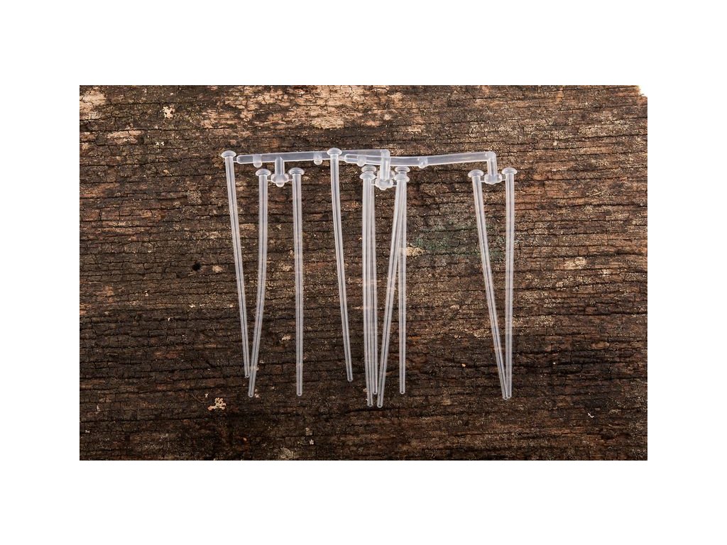A set of loose pegs for replacement of the pegs at the Flexistripper – or your own custom plate for line-control in your boat, floattube etc. 30 pegs in a pack, available in clear and red.