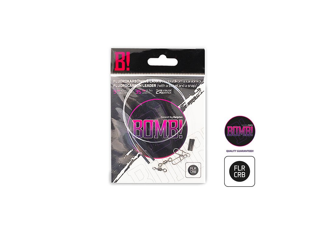 Fluorocarbonový nadväzec je vyrobený zo 100% fluorocarbonu. Vďaka nemu absolútne zneviditeľníte svoju nástrahu, no zároveň máte stále istotu, že vám ostré zuby dravca toto lanko neprekúsnu.. Fluorocarbonové lanko je jemné a mäkké na dotyk, no zároveň vďaka špeciálnemu zloženiu granulátu samotného lanka, aj veľmi odolné. Vďaka vlastnostiam tohto lanka je s ním akákoľvek manipulácia veľmi príjemná a ľahká. Navyše jeho materiálové zloženie umožňuje nástrahu odprezentovať na neprekonateľnej úrovni aj tým najopatrnejším predátorom!Na jednej strane lanka BOMB! sa nachádza obratlík a na druhom karabínka. V každom balení sa nachádzajú až 2 kusy tohto odolného lanka!