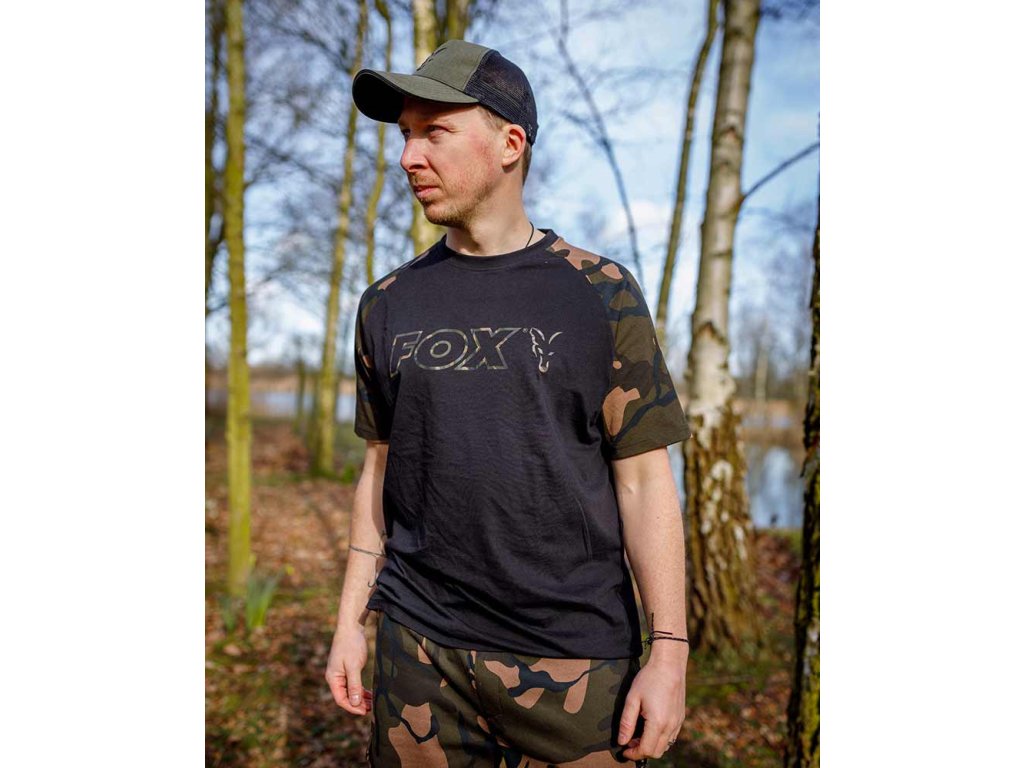 - Veľké kamuflážne logo Fox vytlačené na hrudi