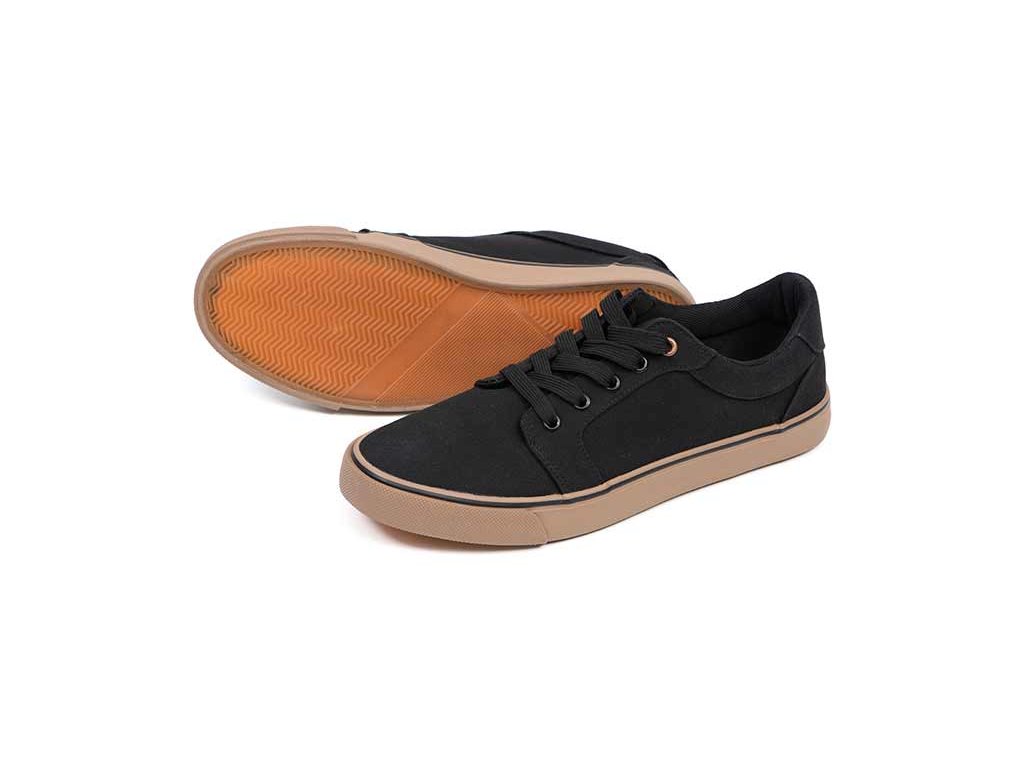 - Pohodlné plátěné boty kombinaci černé a tříslové barvy