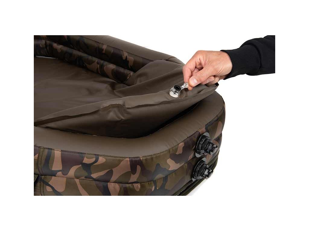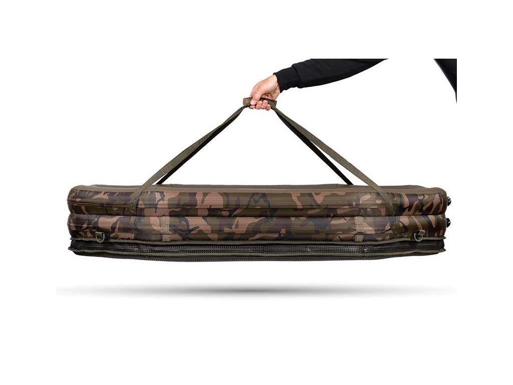 - Oválná nafukovací podložka, navržená pro maximální ochranu ulovené ryby g mat se svrchní polyesterovou látkou Fox camo.